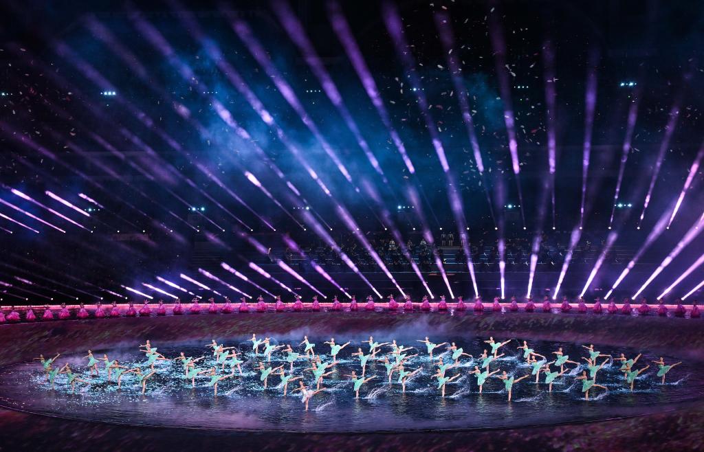 11月9日,第十五届全国运动会开幕式在广东奥林匹克体育中心举行,图为演员在开幕式现场表演。新华社记者 燕雁 摄