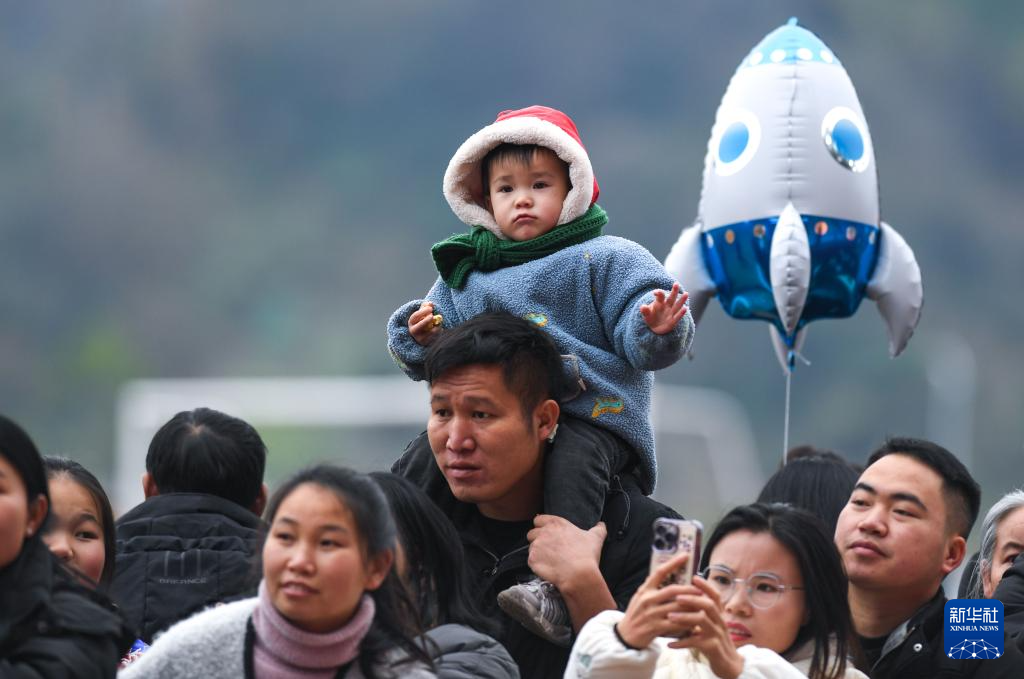 1月1日,一名小朋友与家人在贵州省三都水族自治县观看“村马”比赛。