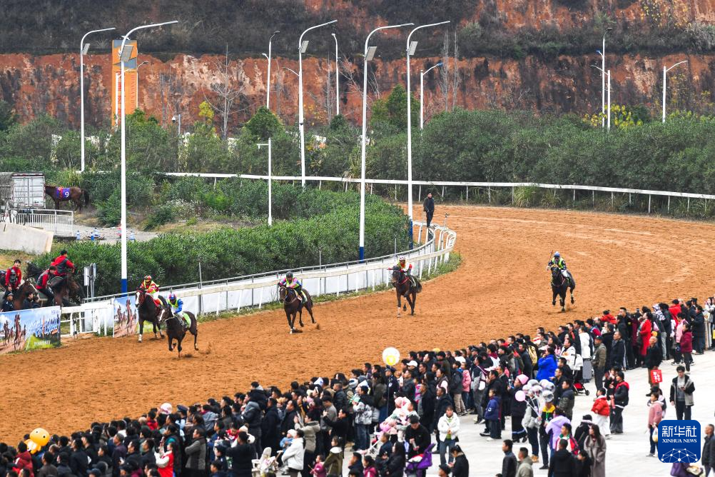 1月1日,人们在贵州省三都水族自治县观看“村马”比赛。