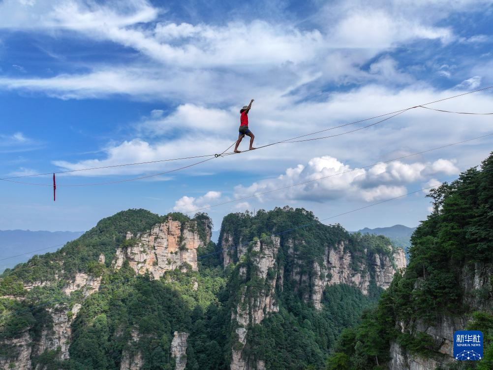 当日,2025张家界国家森林公园黄石寨景区“亚洲之王”千米高空扁带争霸赛开赛,来自中国、法国、德国、美国等10个国家和地区的20名顶尖选手参赛。