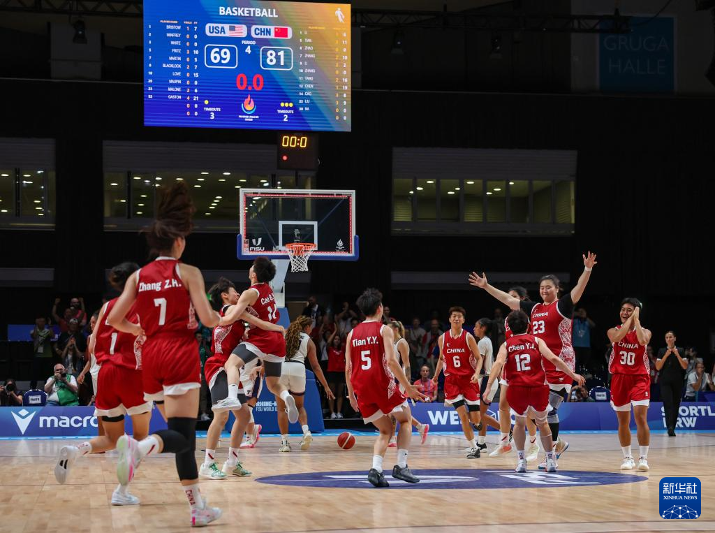 当日,在德国埃森进行的2025年德国莱茵-鲁尔世界大学生夏季运动会女篮决赛中,中国队81比69战胜美国队,成功卫冕。