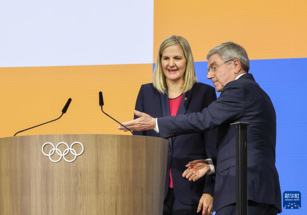 2025年3月20日,巴赫(右)邀请国际奥委会新一任主席考文垂上台致辞。