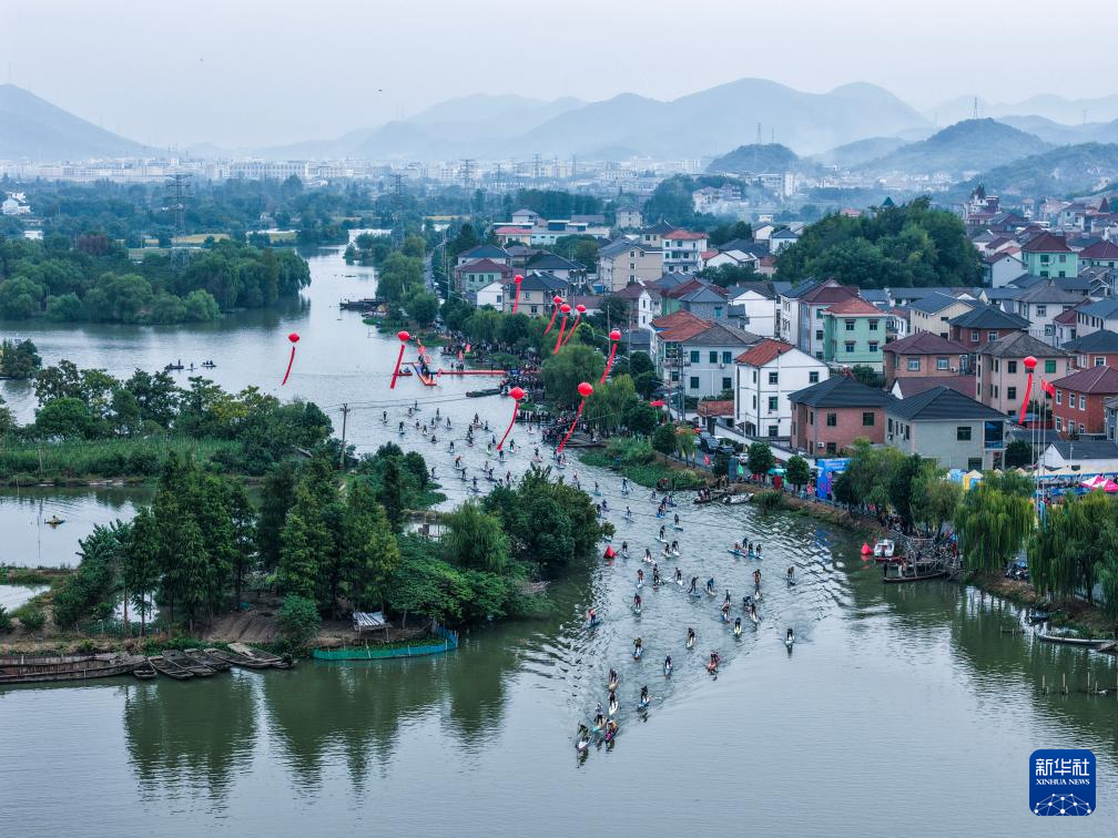 当日,2025白塔湖湿地皮划艇桨板邀请赛在浙江省诸暨市店口镇白塔湖国家湿地公园举行,来自全国的250多名皮艇及桨板运动爱好者参加了本次比赛。