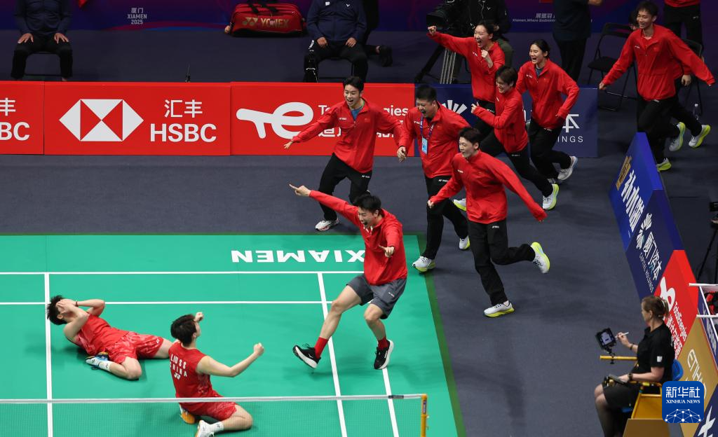 当日,在福建厦门举行的2025年苏迪曼杯世界羽毛球混合团体锦标赛决赛中,中国队3比1战胜韩国队,夺得冠军。