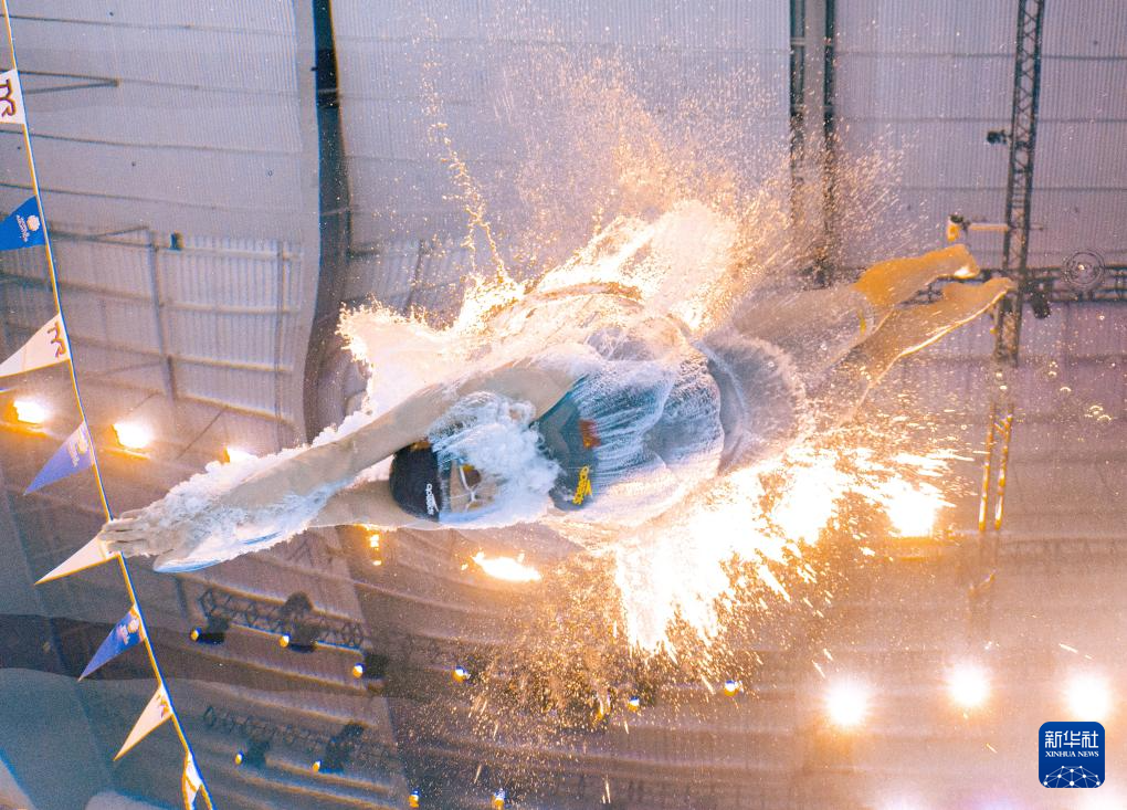 2025年11月15日,参赛选手在比赛中入水。