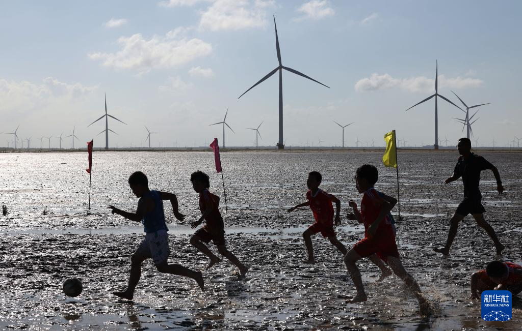 当日,为期三天的“滩涂少年·足梦飞扬——2025首届江苏青少年滩涂足球争霸赛暨第八届如东小洋口滩涂足球赛”在如东小洋口旅游度假区“海上迪斯科”滩涂赛场开赛,来自常州、泰州、扬州、南通等江苏8个城市的100名青少年足球健儿参赛。