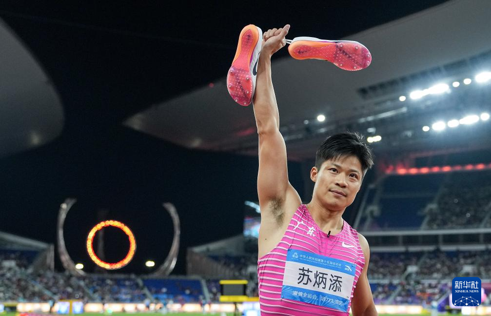 2025年11月20日,广东队选手苏炳添在比赛后向观众致意。