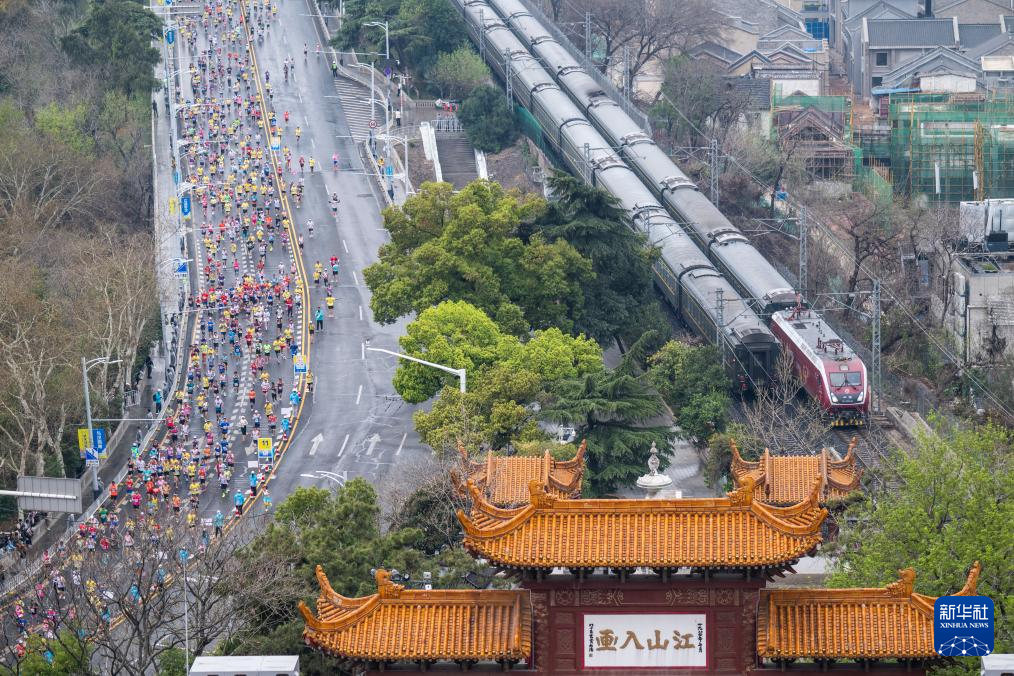 2025年3月23日,参赛选手经过黄鹤楼。