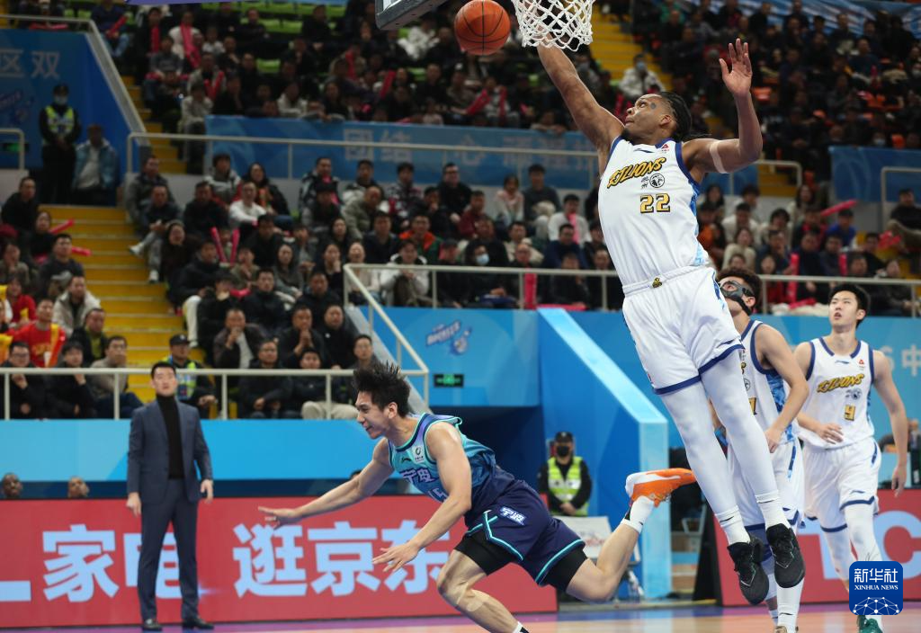 1月11日,浙江方兴渡队球员胡金秋在比赛中扣篮。