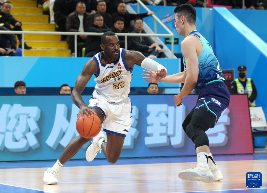 1月11日,浙江方兴渡队球员桑普森(左)在比赛中带球突破。
