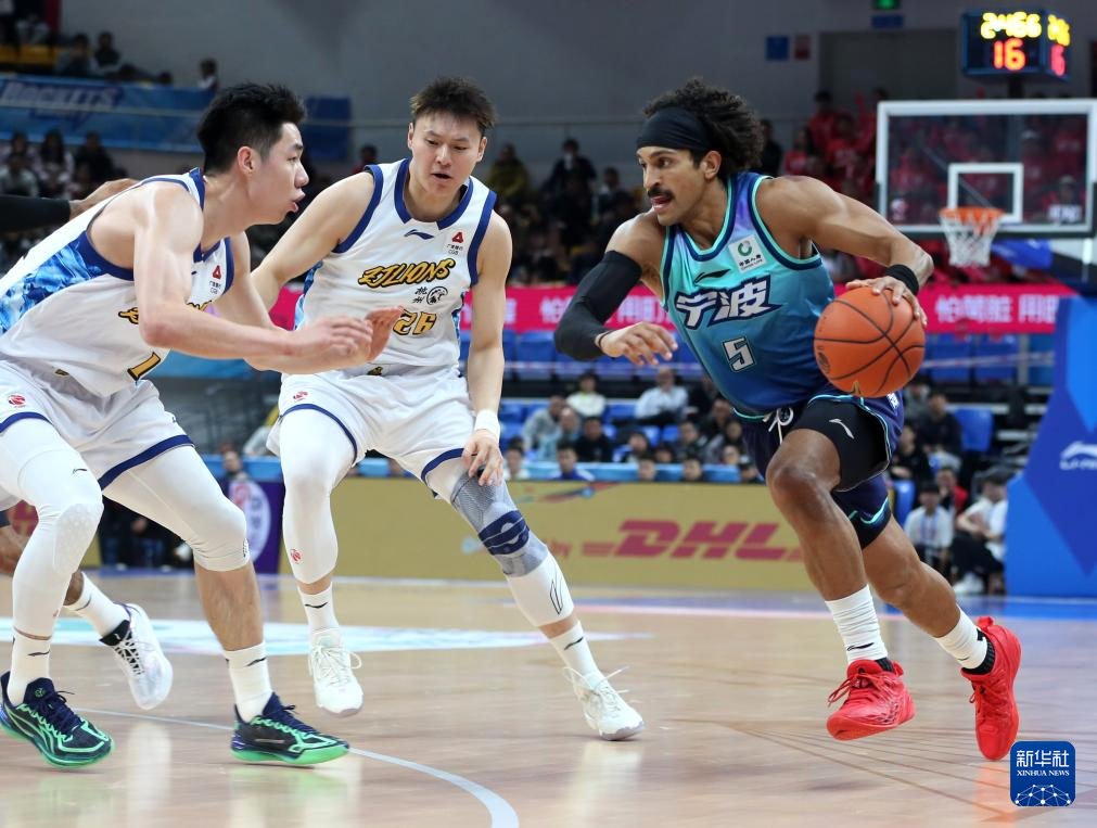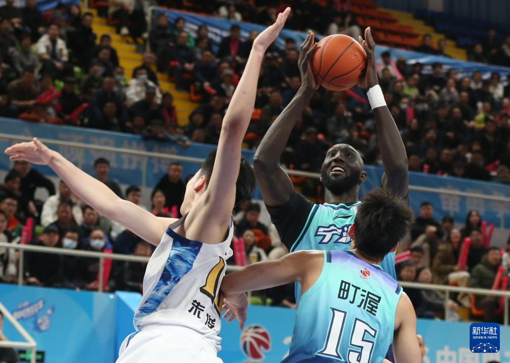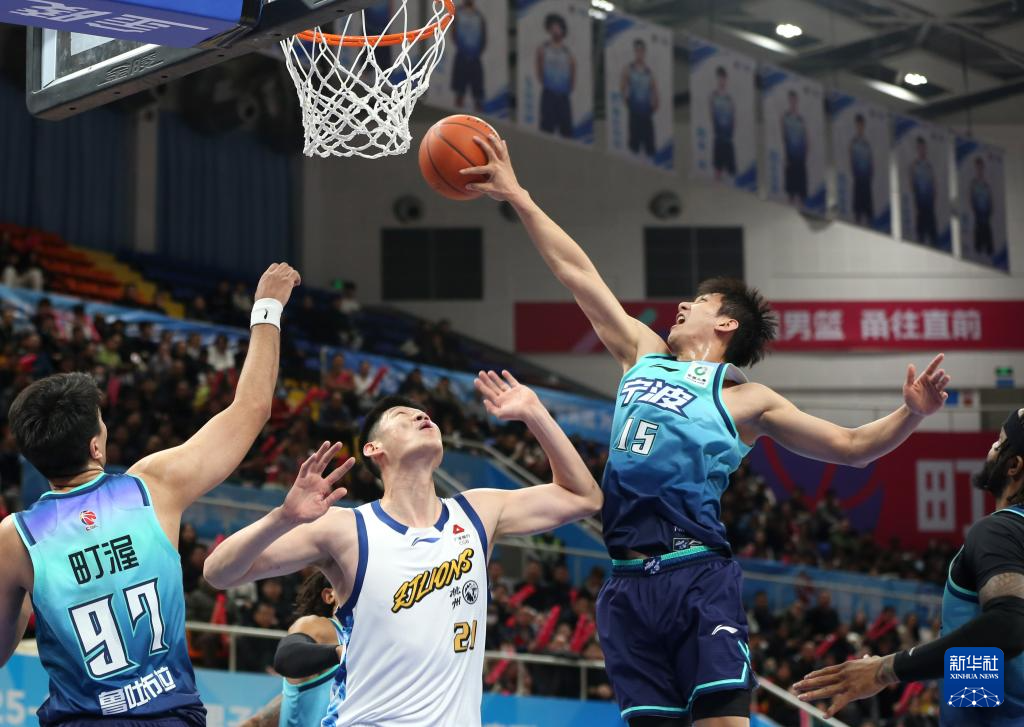 1月11日,宁波町渥队球员鲁吐布拉(中)在比赛中上篮。