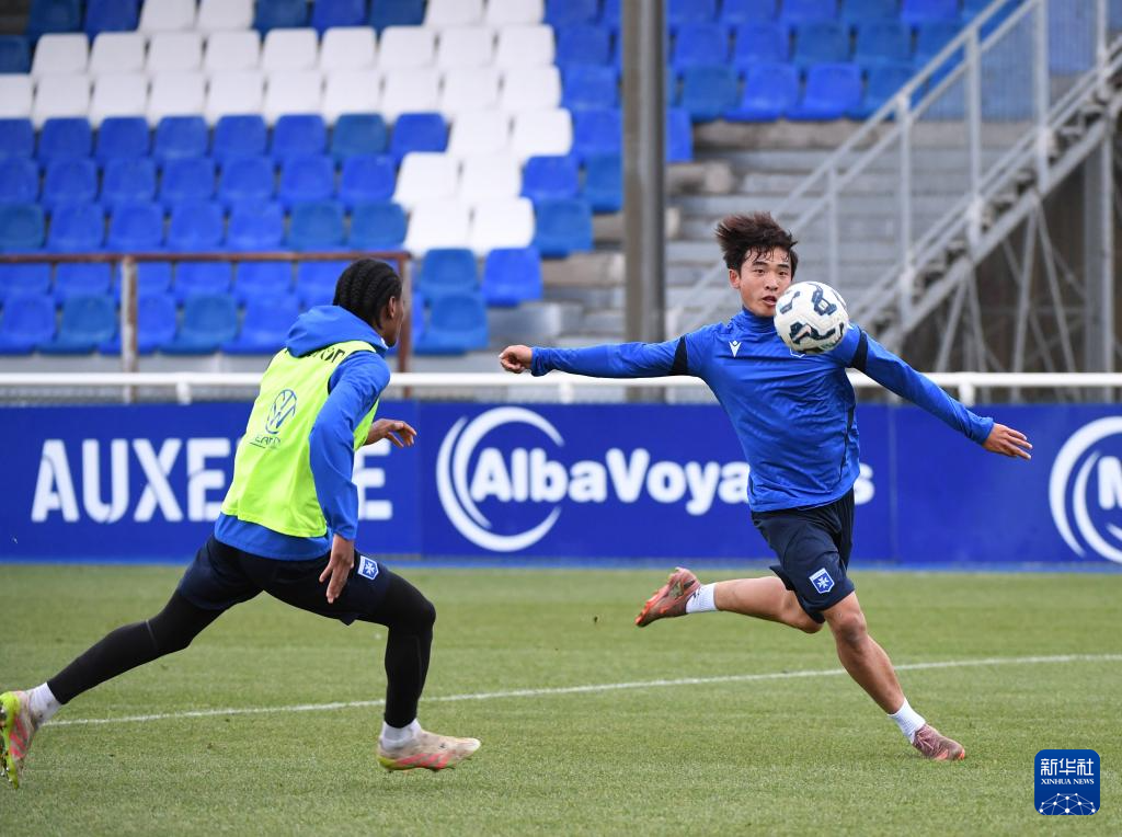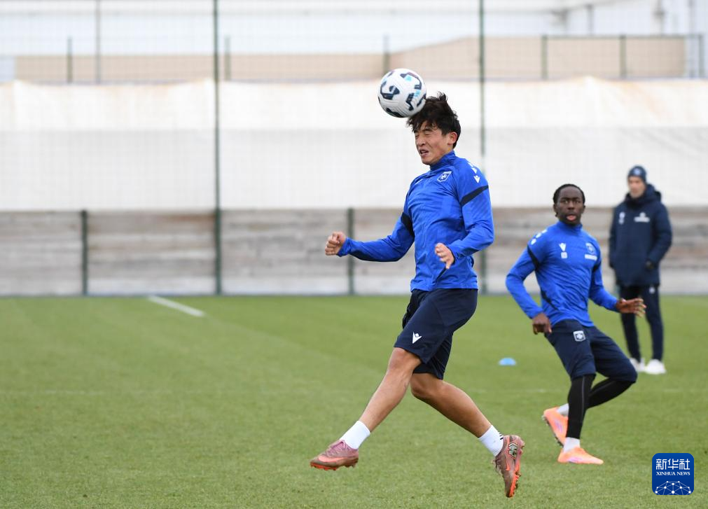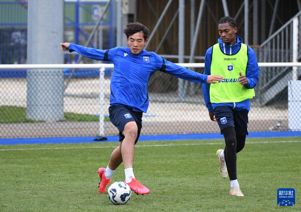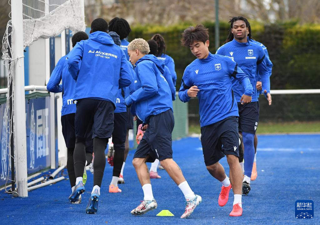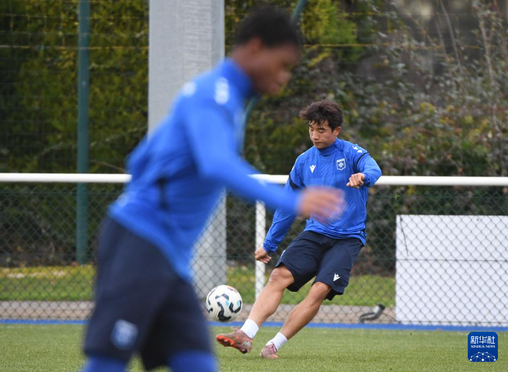 当日,即将加盟法甲欧塞尔俱乐部的中国球员魏祥鑫在法国欧塞尔参加欧塞尔预备队训练。