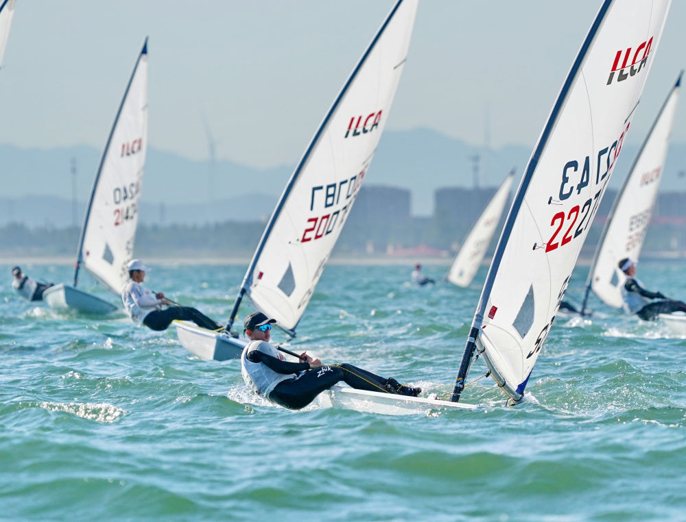 图为ILCA亚洲(公开)帆船锦标赛在秦皇岛市开赛。新华社发(李铎 摄)