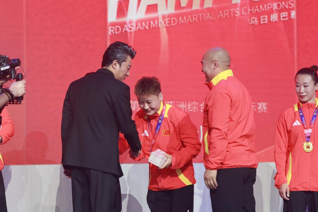 表彰仪式上,山西千岁格斗有限公司董事长、JCK战觉城品牌创始人及拥有者、中国国家综合格斗队总教练杨宇,为七位金牌得主颁发了荣誉奖章、表彰证书。他表示:“亚锦赛的成绩是前行的动力,接下来队伍将再接再厉、刻苦备战,全力以赴冲击今年9月的亚运会,力争再创佳绩,让东方格斗力量在国际赛场持续闪耀。”