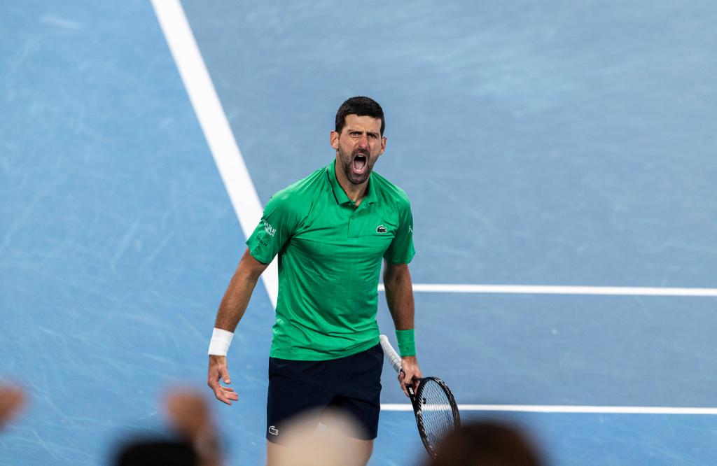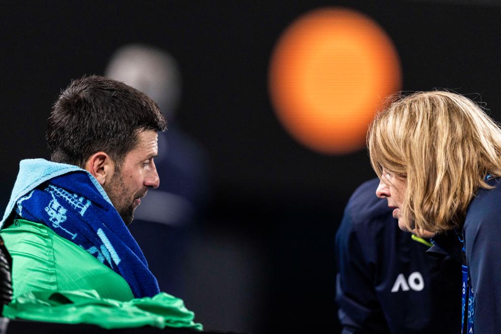 因为不到两天前的半决赛消耗过大,焦科维奇没有在上午训练,选择用更长的时间恢复。在与辛纳的4小时9分钟鏖战里,他多次呕吐,局间直接瘫坐在椅子上,每一次让人以为他快到体能极限时,他总能在回球后爆发出一声声嘶吼。