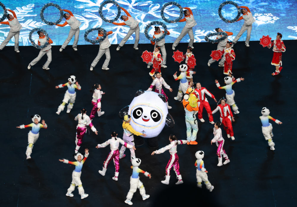 北京冬奥会开幕式“飞扬”火炬嵌入雪花台