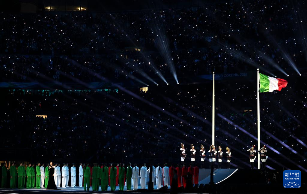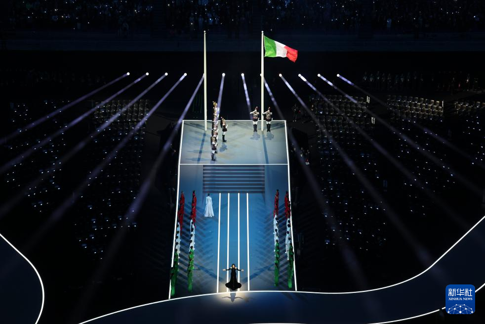 2月6日,意大利国旗在开幕式上升起。