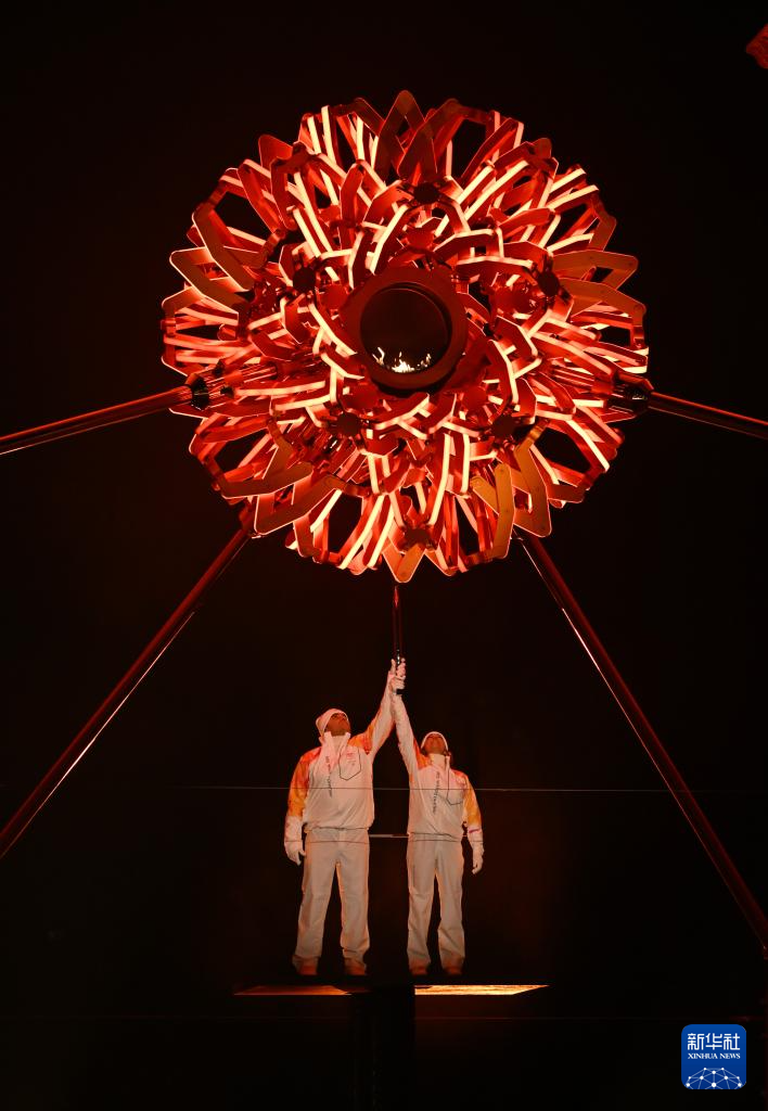 这是2月6日在开幕式现场传递的冬奥火炬。