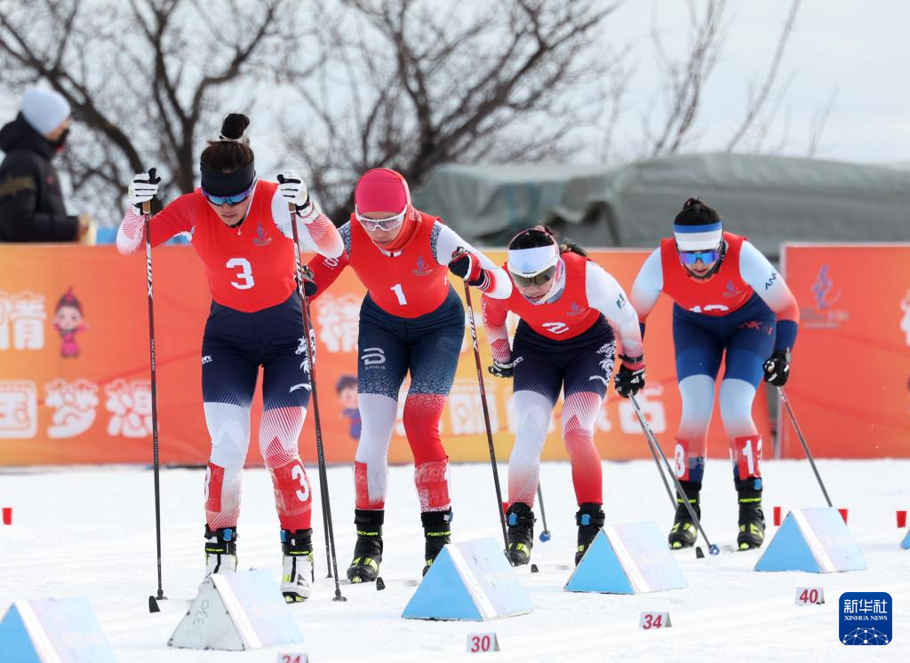当日,第十四届全国冬季运动会越野滑雪公开组女子双追逐(7.5公里传统技术+7.5公里自由技术)比赛在内蒙古乌兰察布市凉城滑雪场举行。