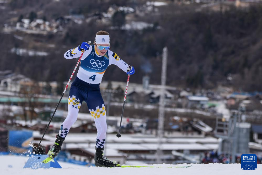 当地时间2月7日,米兰-科尔蒂纳冬奥会越野滑雪女子双追逐(10公里传统技术+10公里自由技术)比赛在意大利泰塞罗举行。