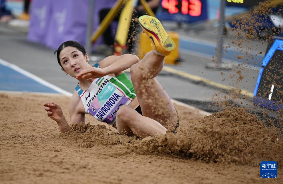 2月7日,乌兹别克斯坦选手沙丽法·达夫罗诺娃在女子三级跳远决赛中。最终,她获得冠军。