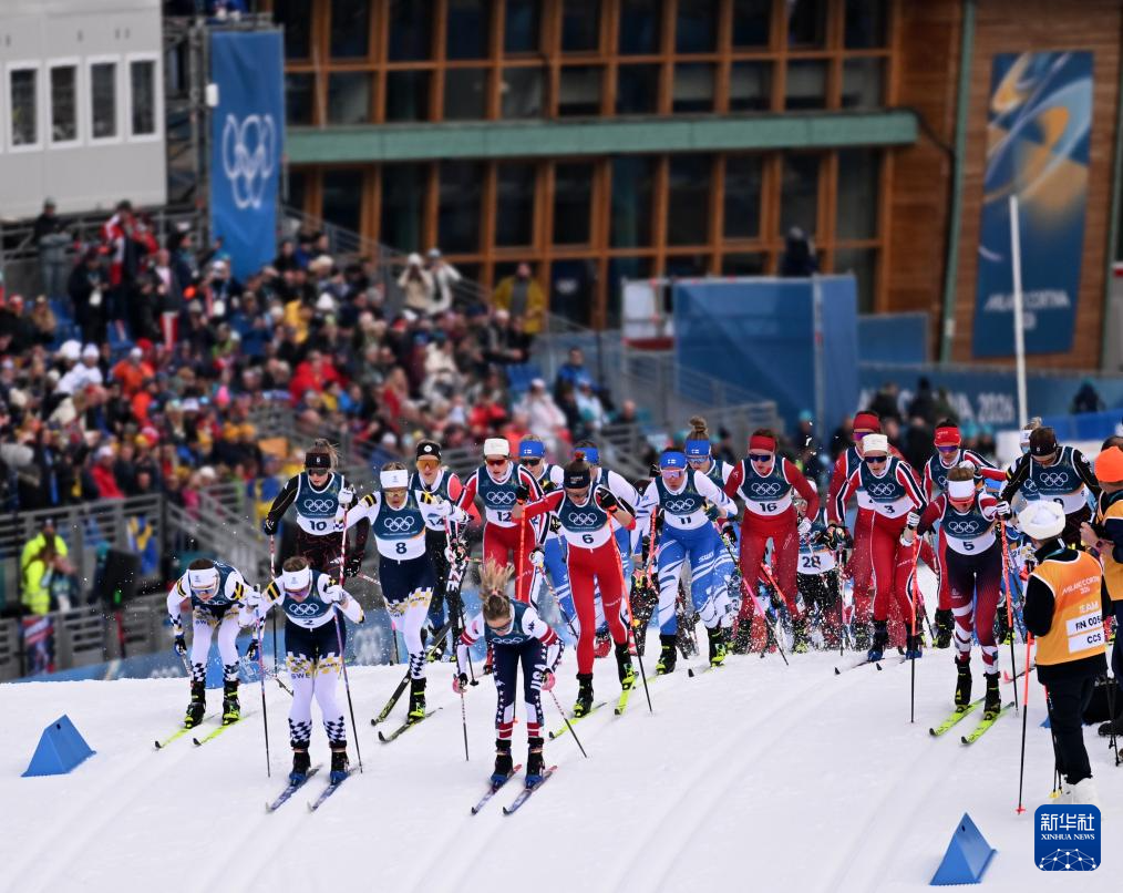 当地时间2月7日,米兰-科尔蒂纳冬奥会越野滑雪女子双追逐(10公里传统技术+10公里自由技术)比赛在意大利泰塞罗举行。