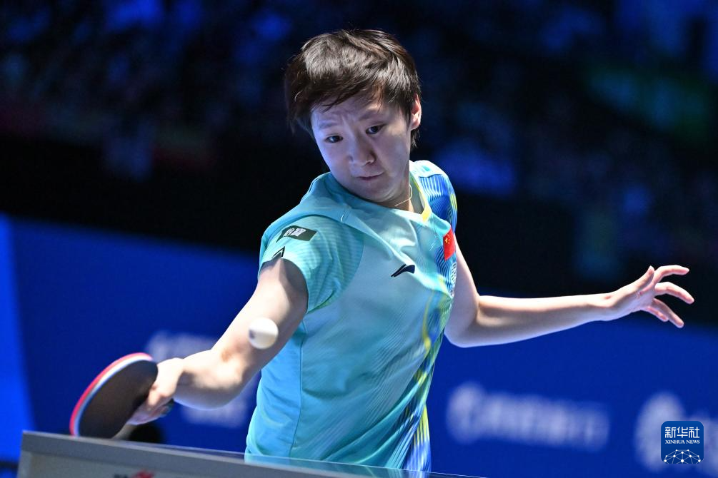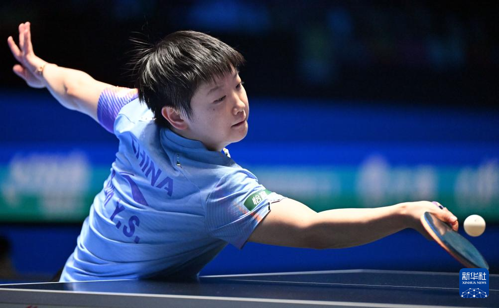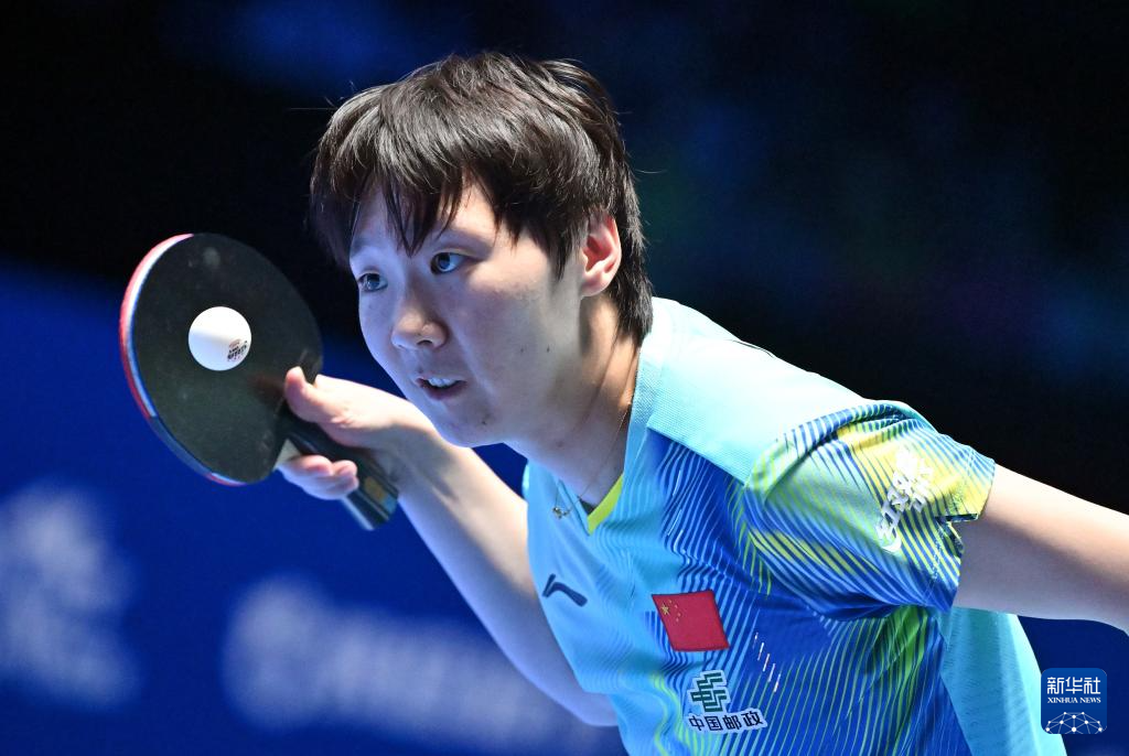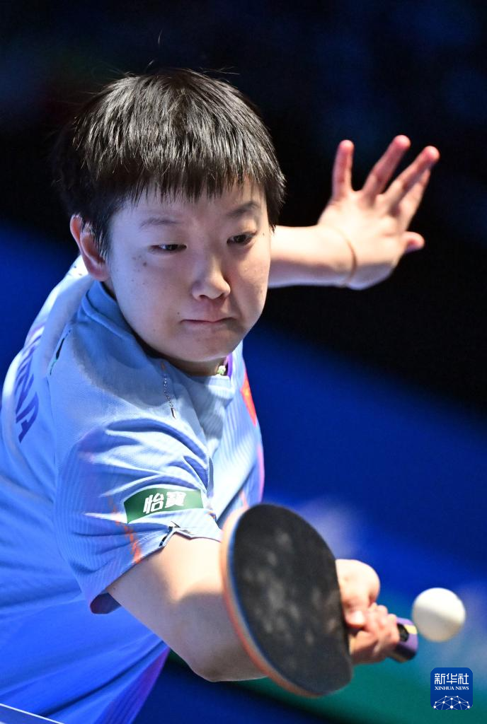 2月8日,孙颖莎在比赛中回球。