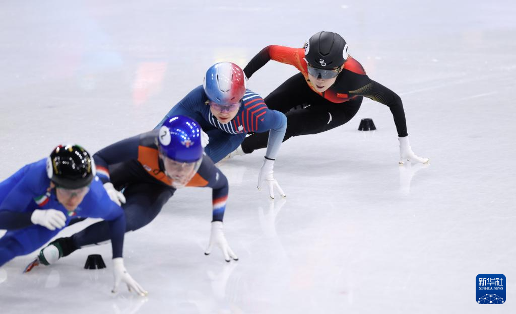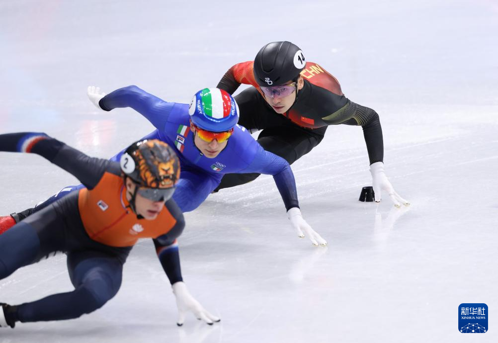 2月10日,中国队选手刘少昂(左二)在比赛中冲线。