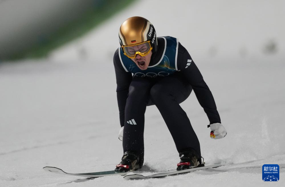 2月9日,德国选手菲利普·雷蒙德在比赛后庆祝。他获得冠军。