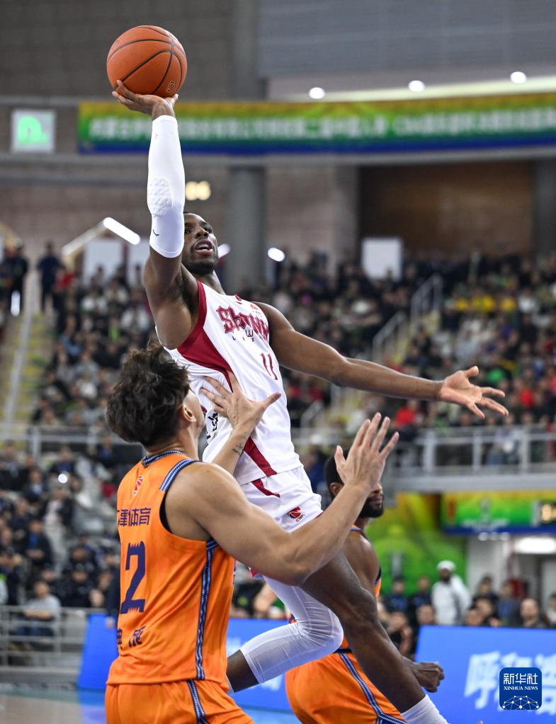 2月12日,山西汾酒队球员迪亚洛(上)在比赛中上篮。