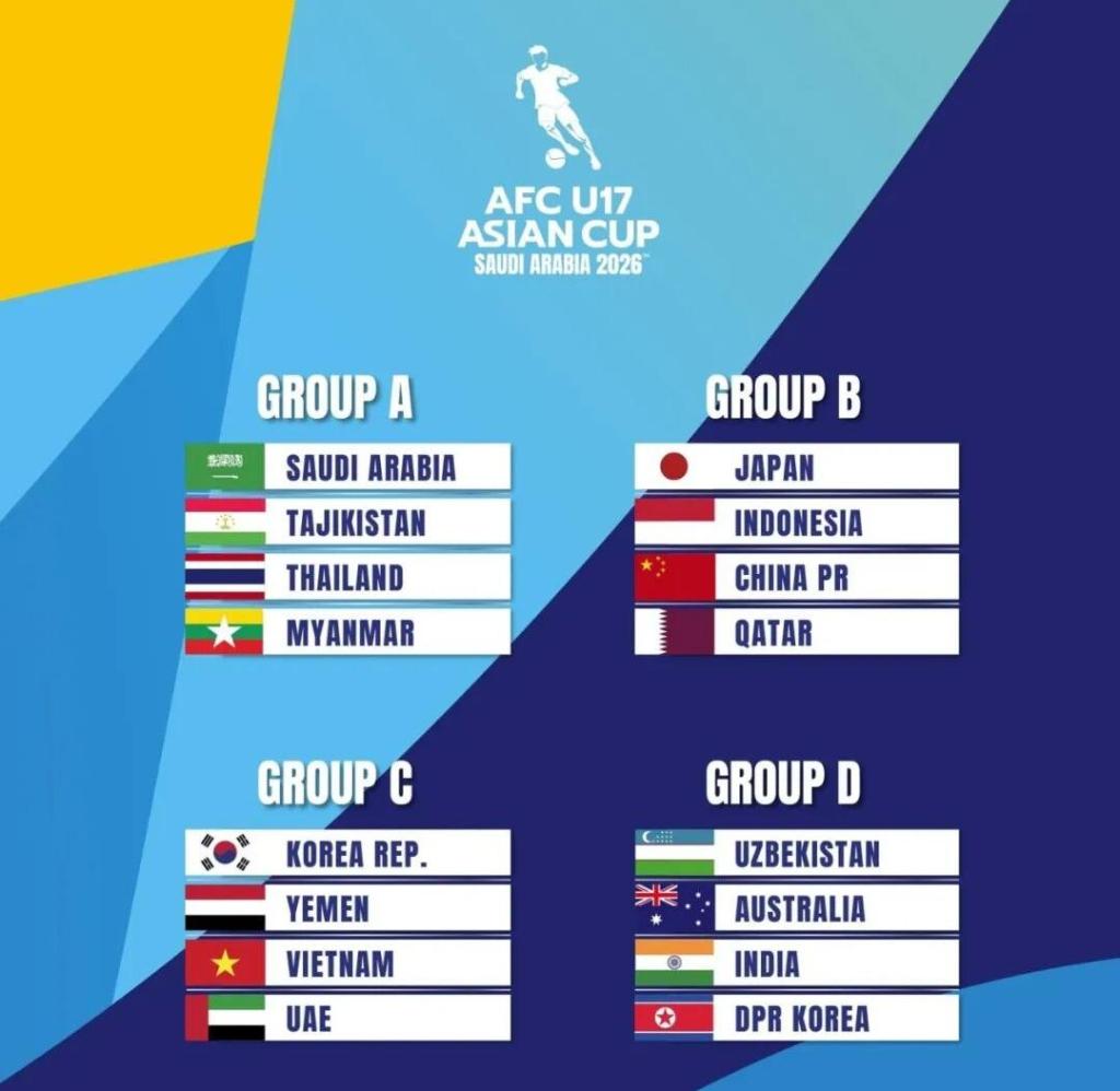 本届U17亚洲杯将于5月7日至24日在沙特阿拉伯举行。16支参赛球队共分为四个小组,各小组前两名可直接晋级八强,并直接锁定今年底在卡塔尔举行的2026年U17男足世界杯(世少赛)参赛资格。