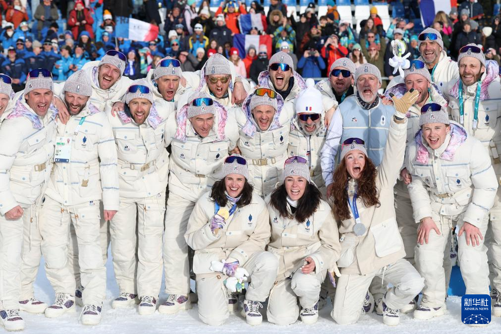 2月11日,法国队在颁奖仪式后合影。