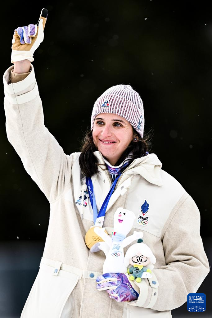 2月11日,法国选手让莫诺在终点线庆祝。她获得亚军。