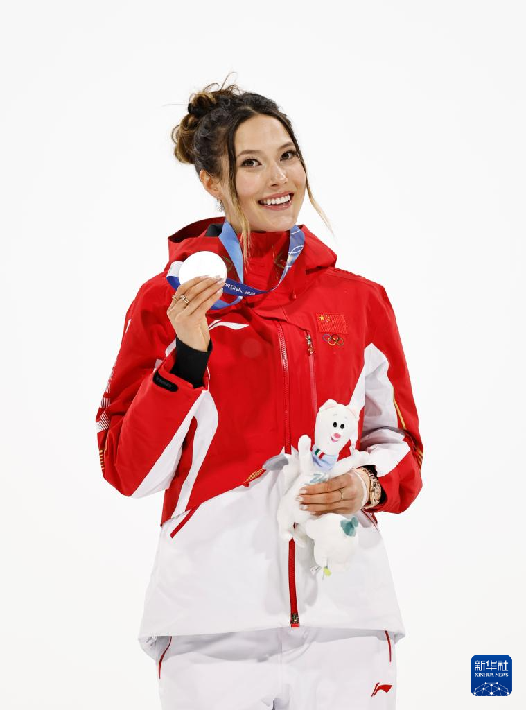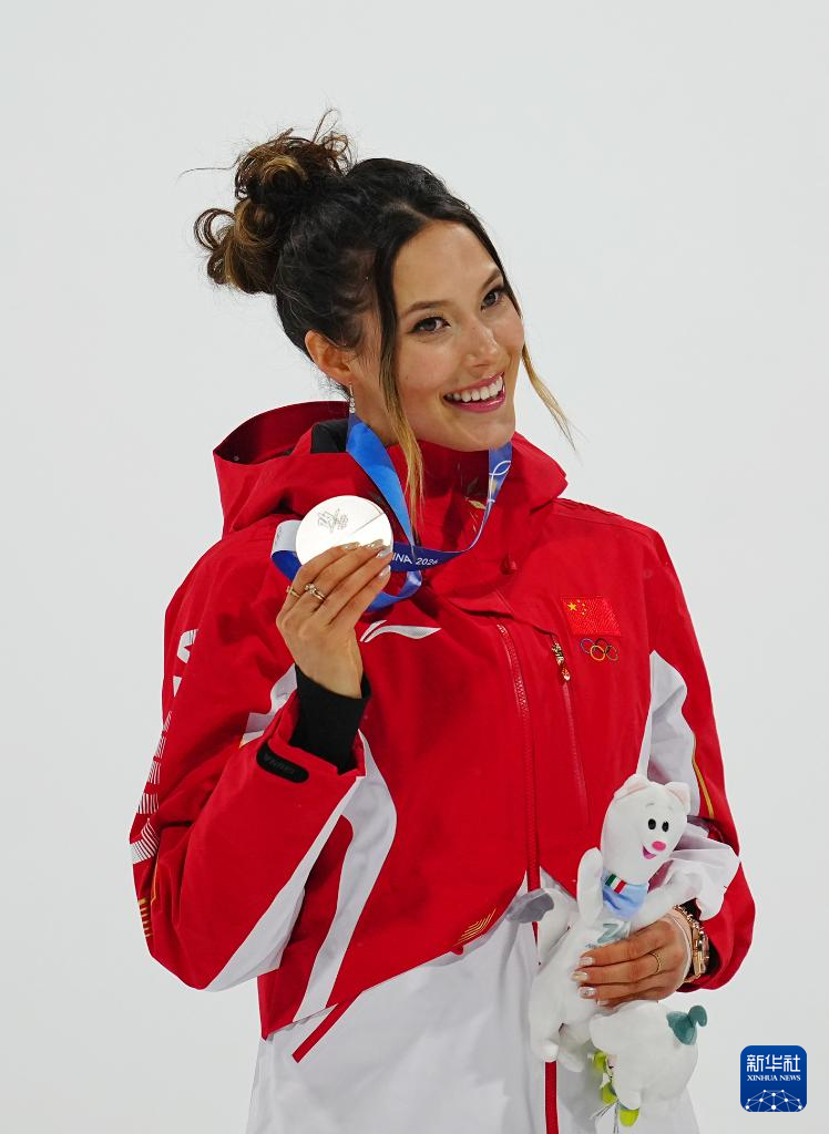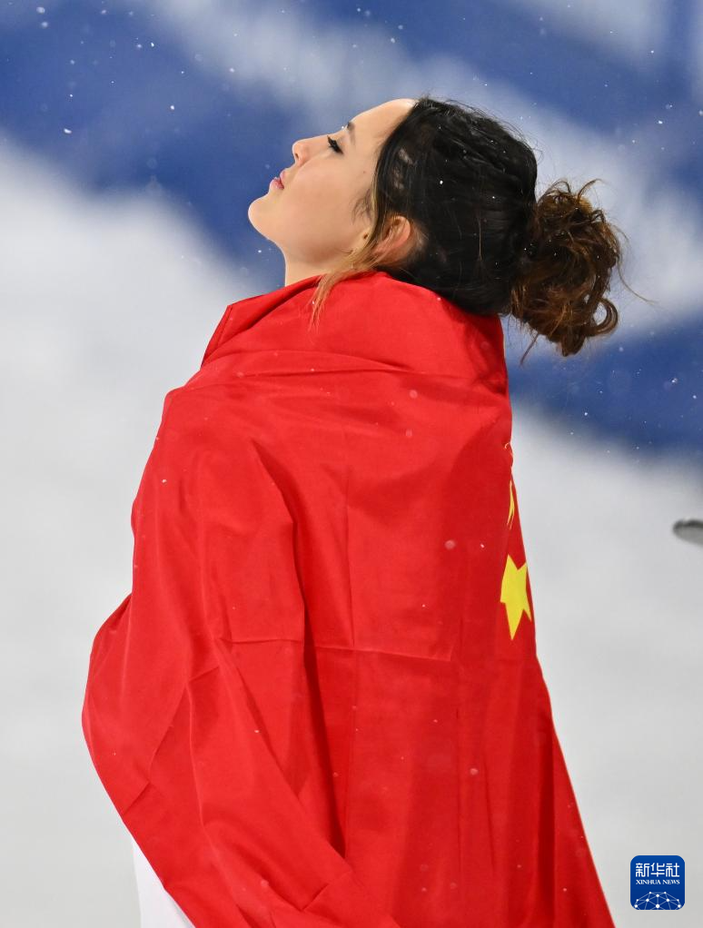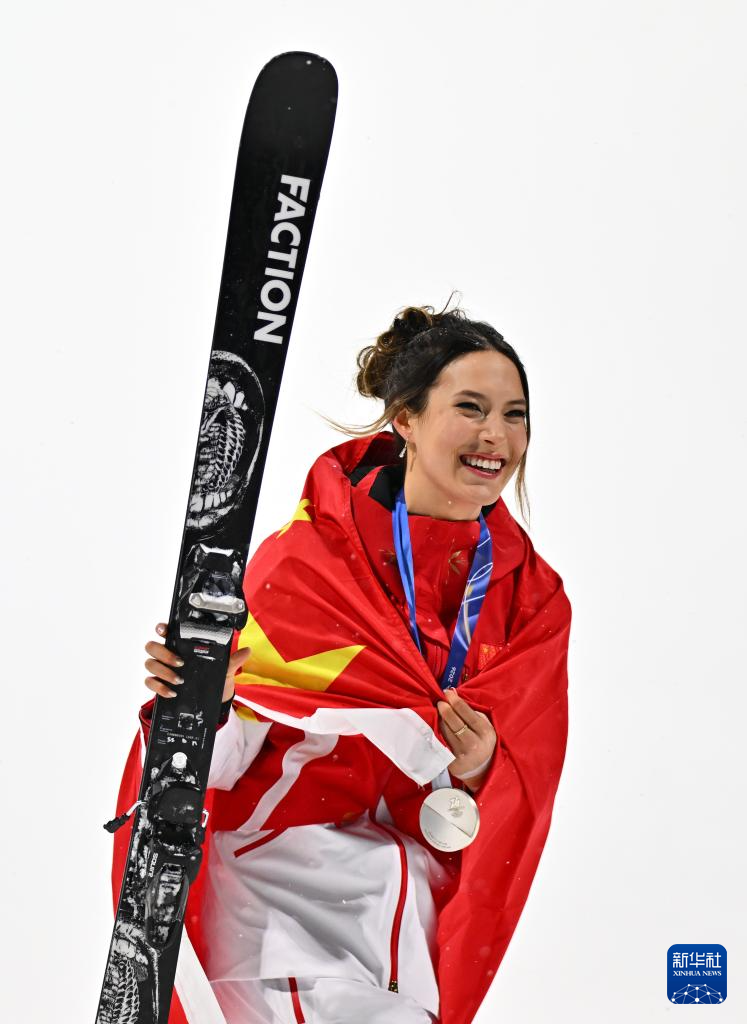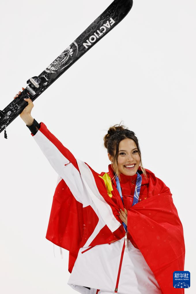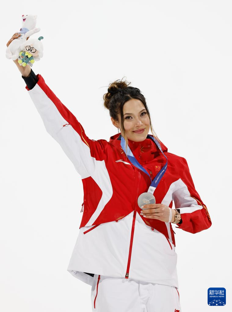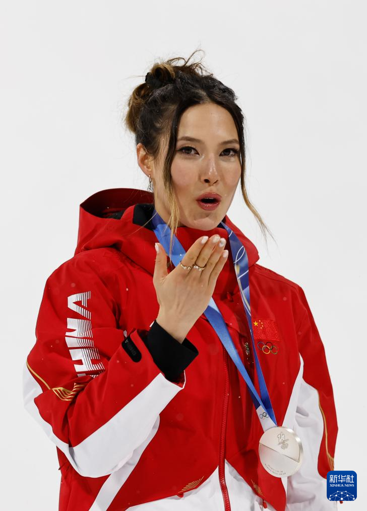 2月16日,中国选手谷爱凌在第三跳后。她获得亚军。
