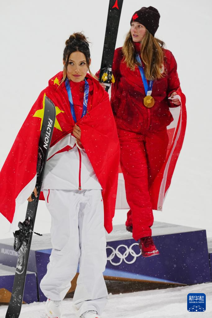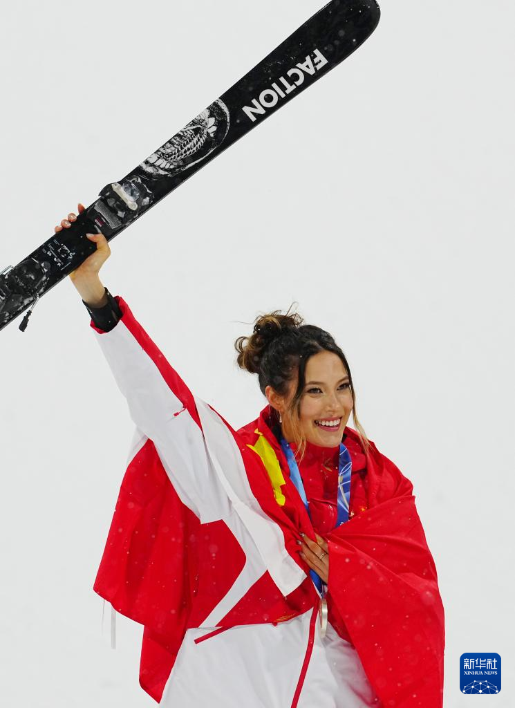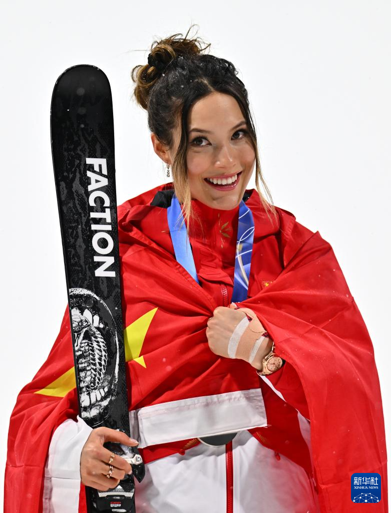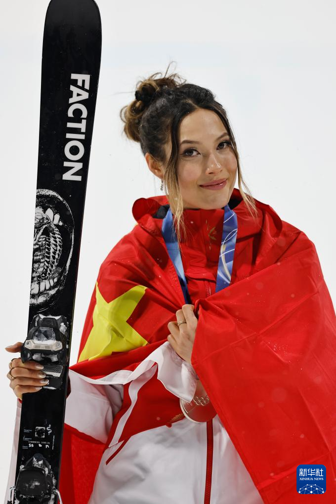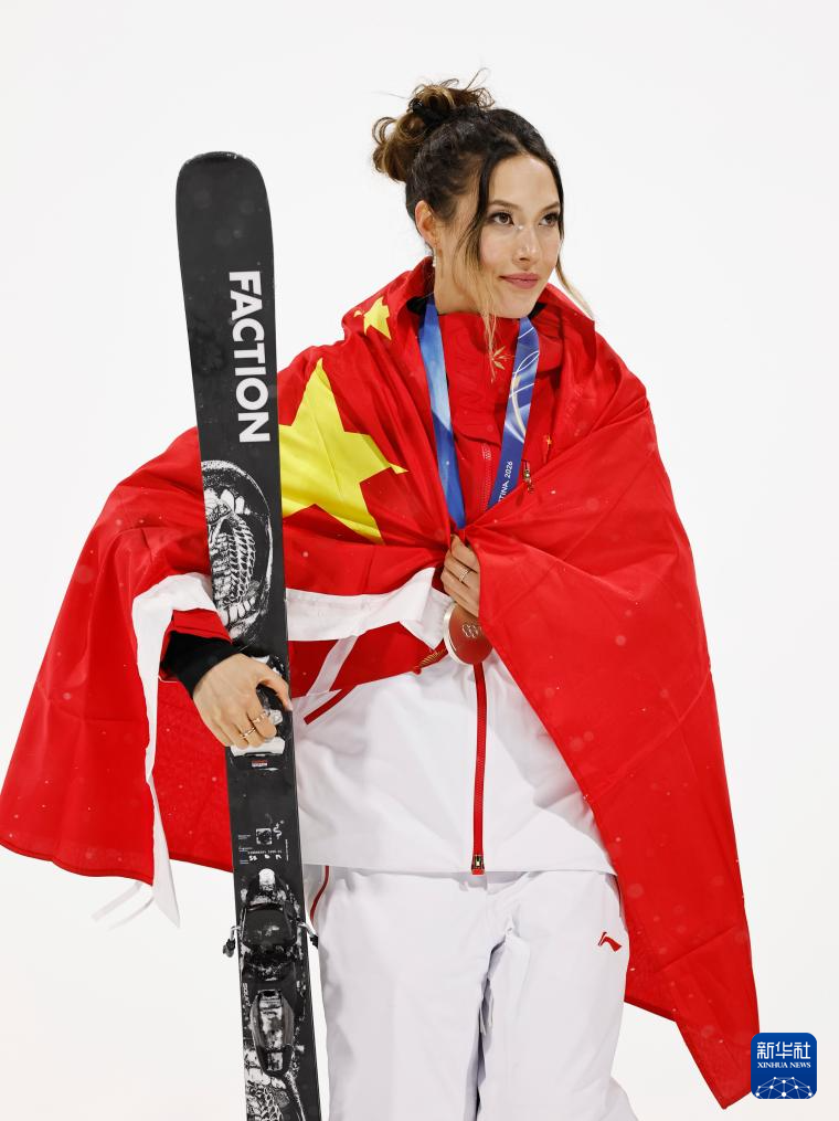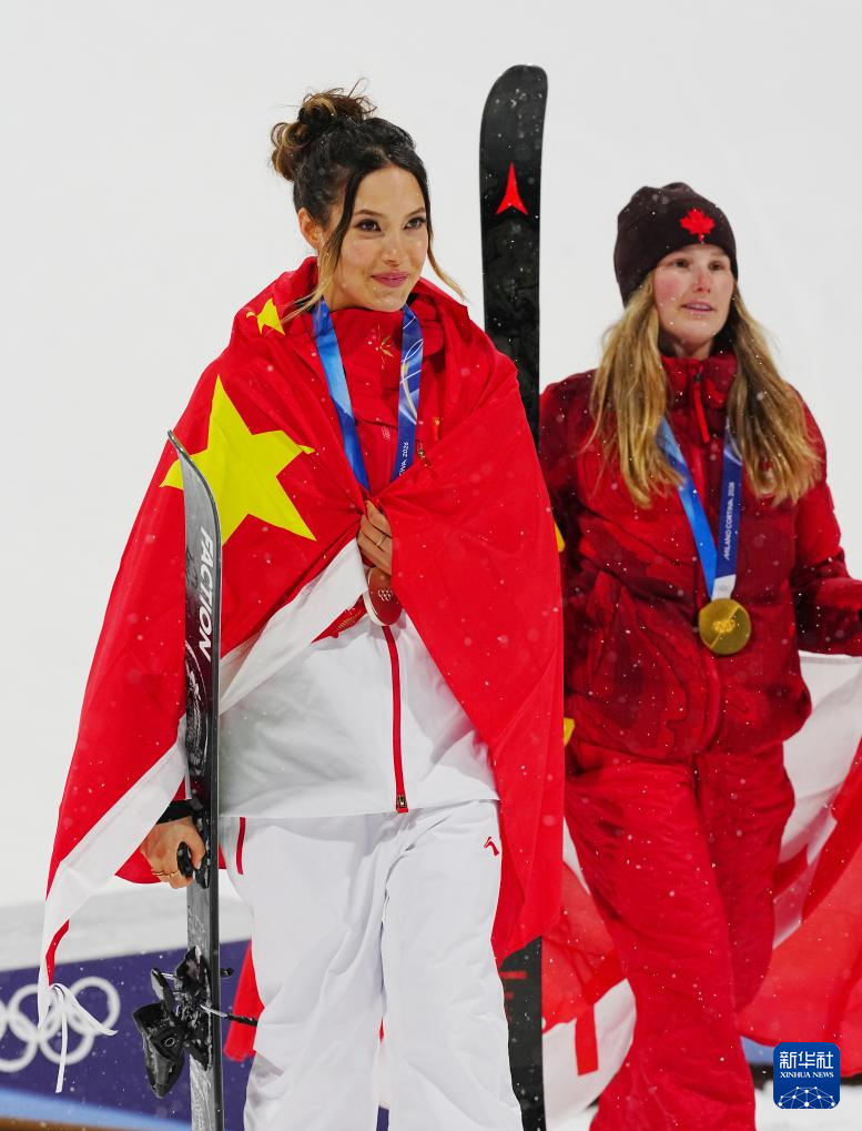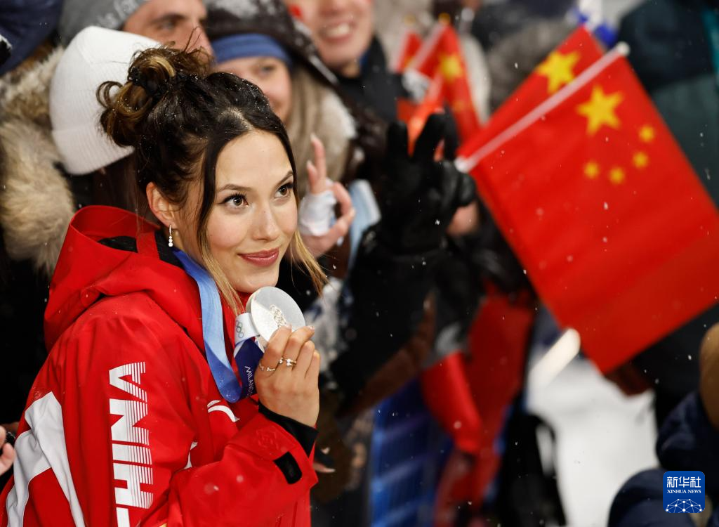 2月16日,中国选手谷爱凌在第三跳后。她获得亚军。