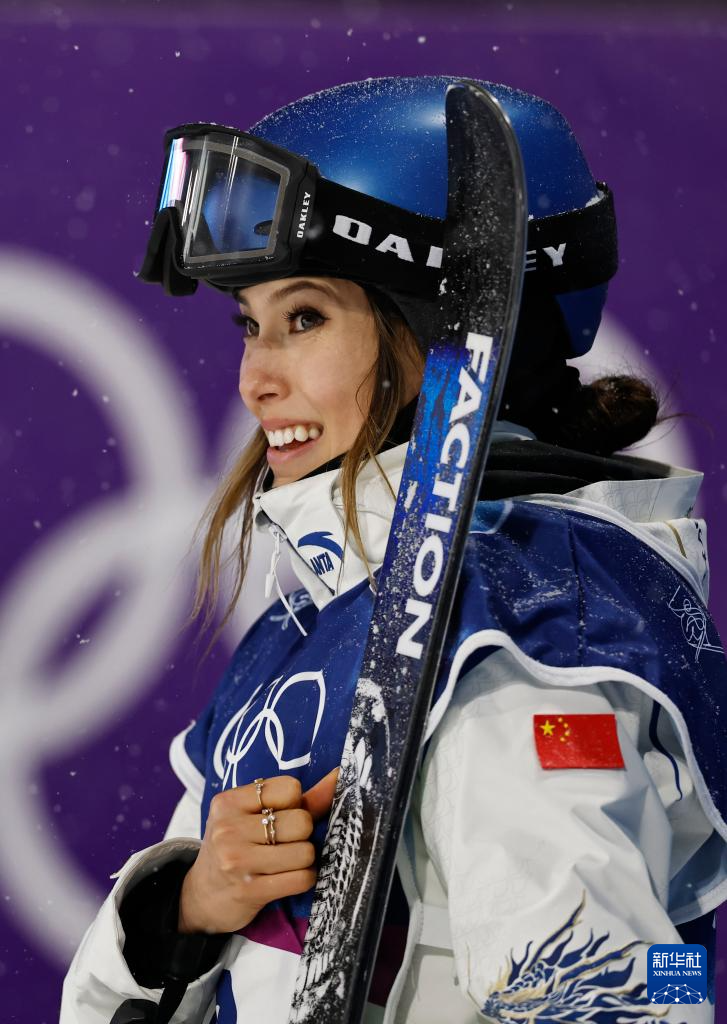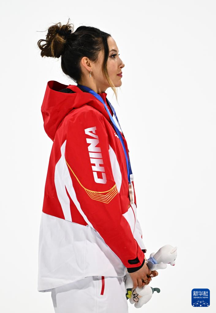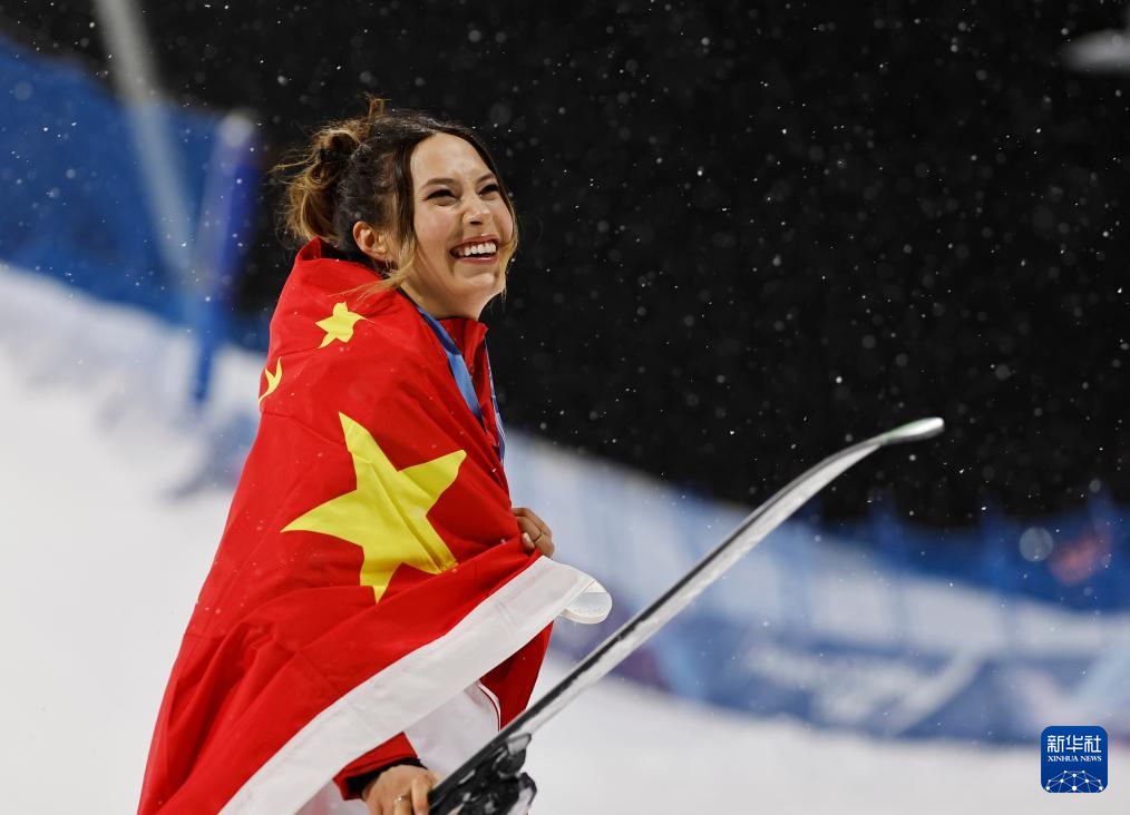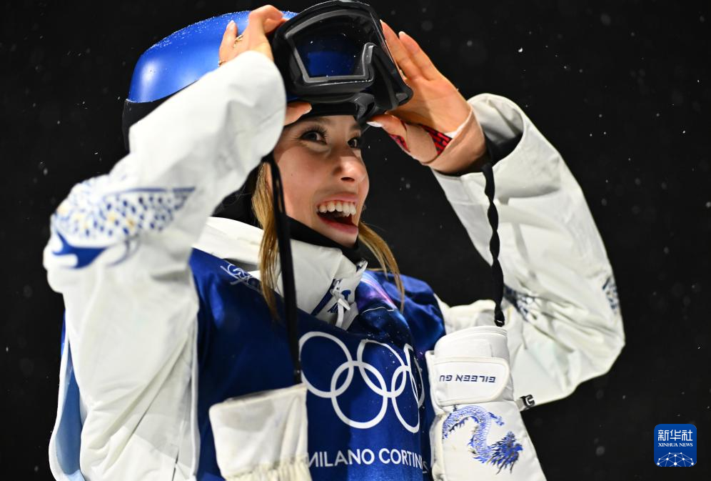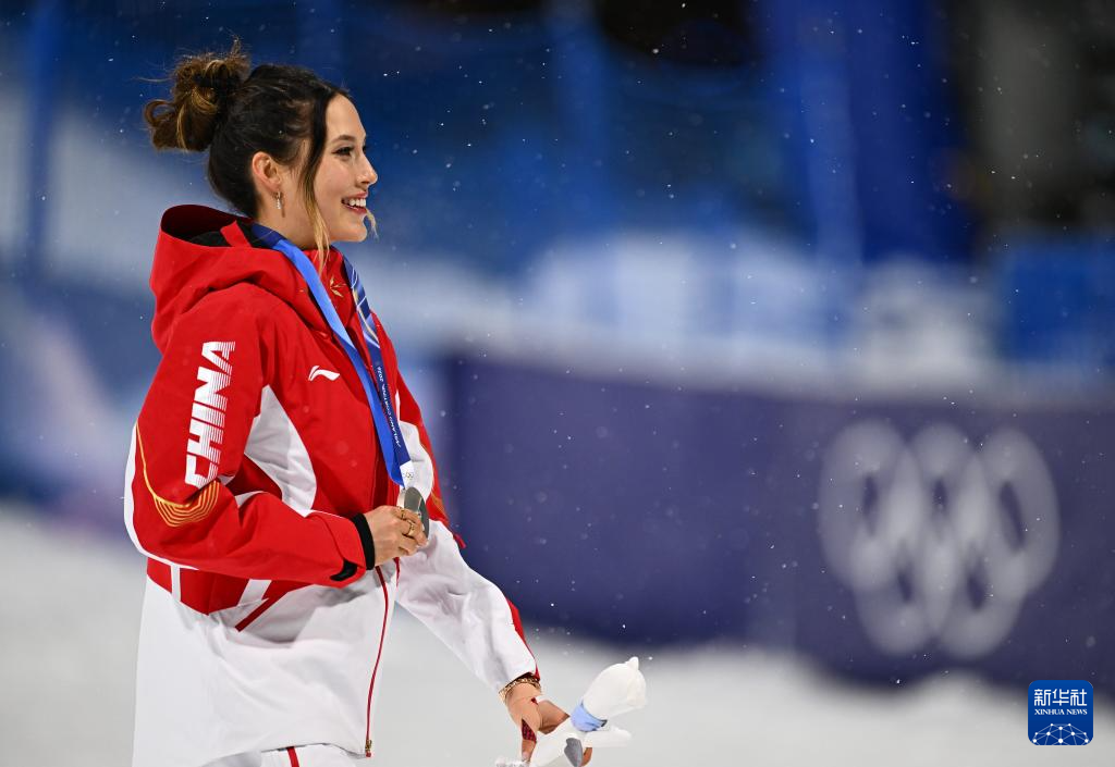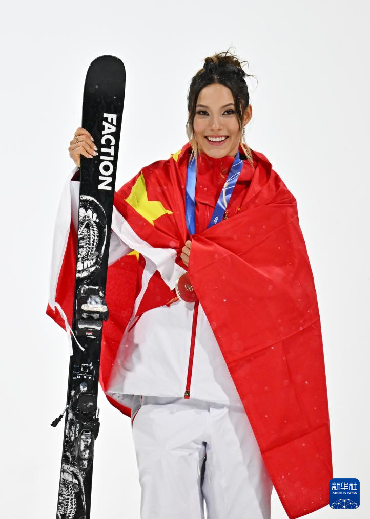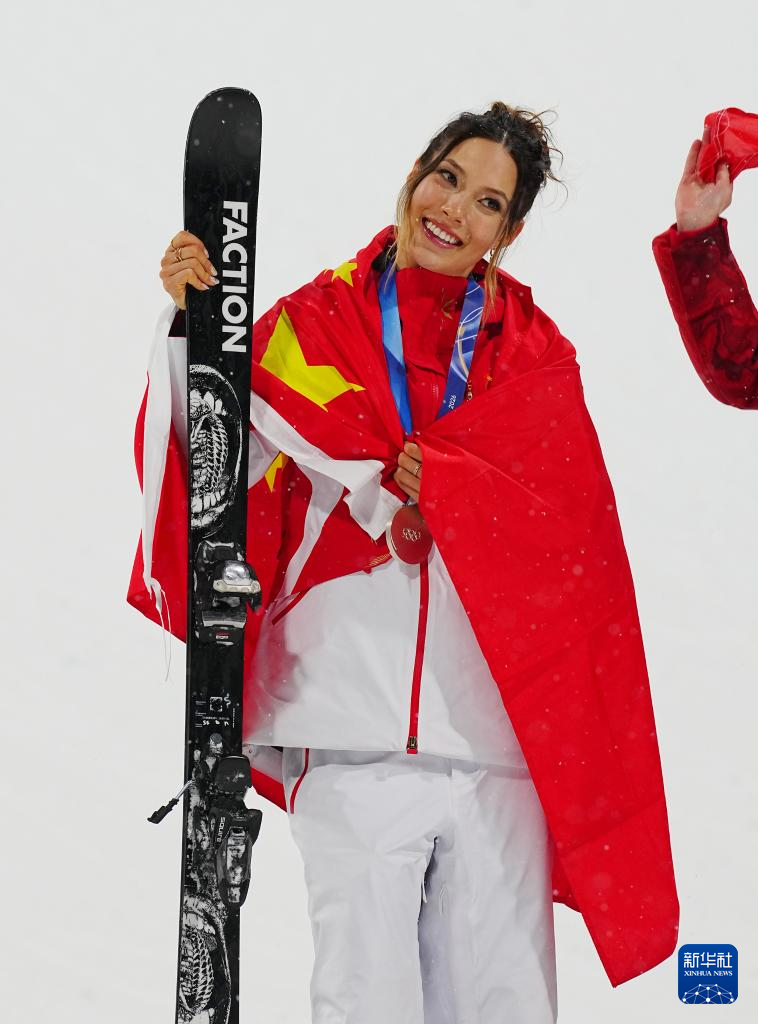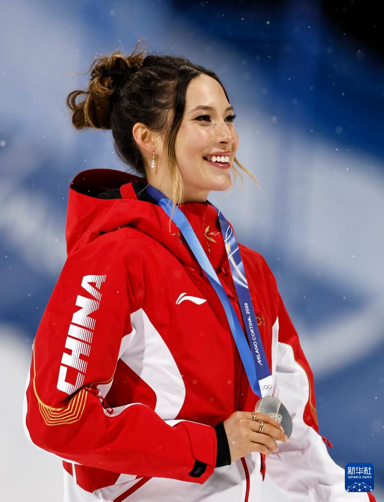 2月16日,中国选手谷爱凌在第三跳后。她获得亚军。