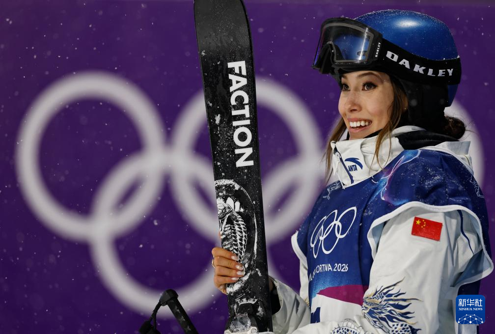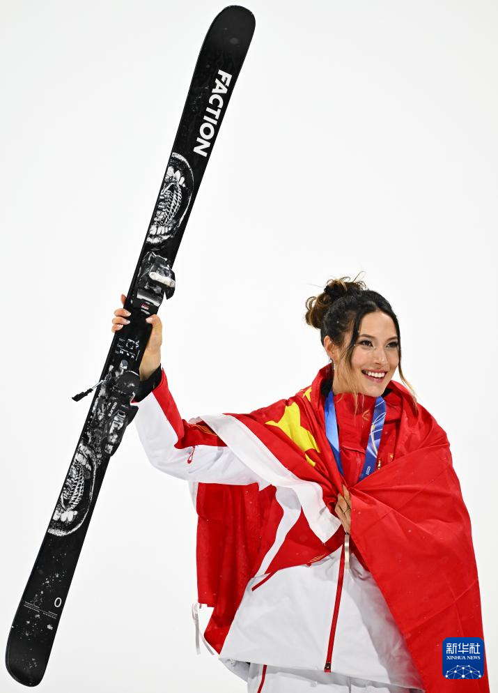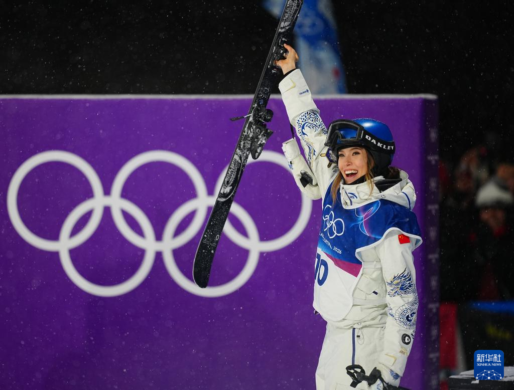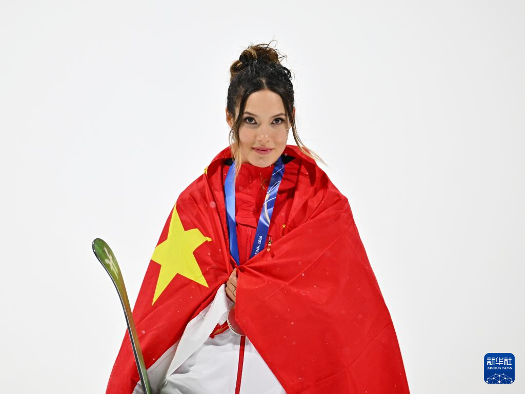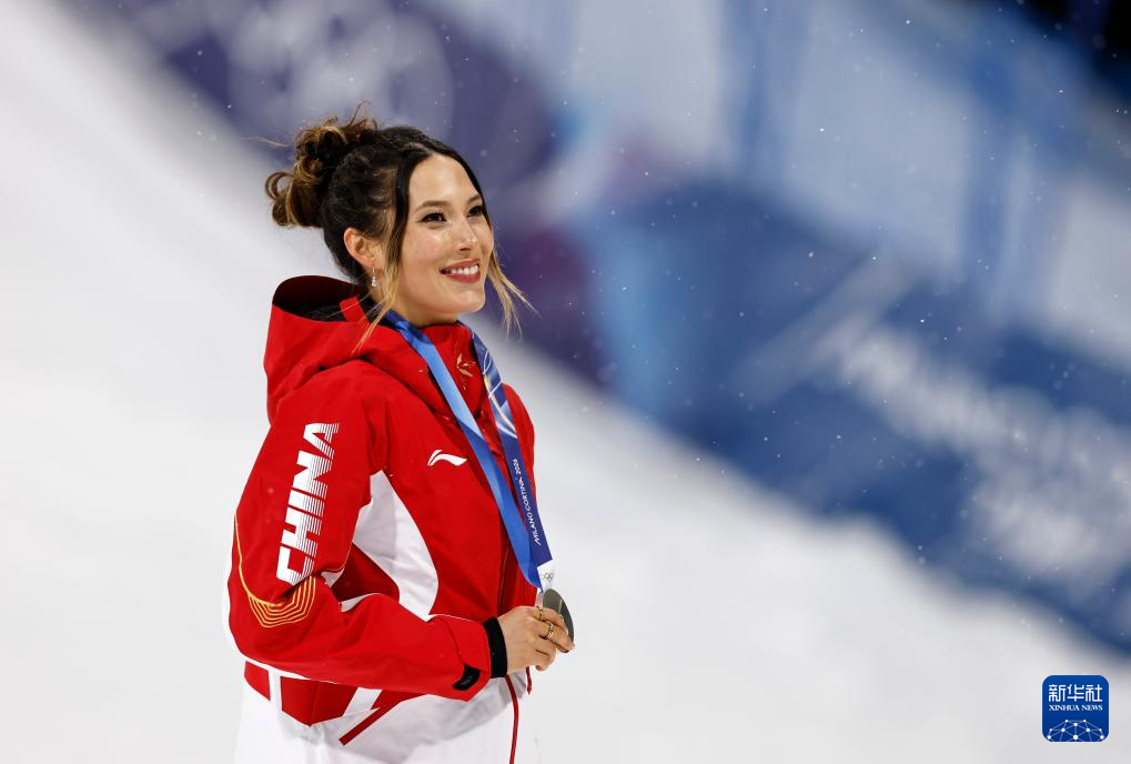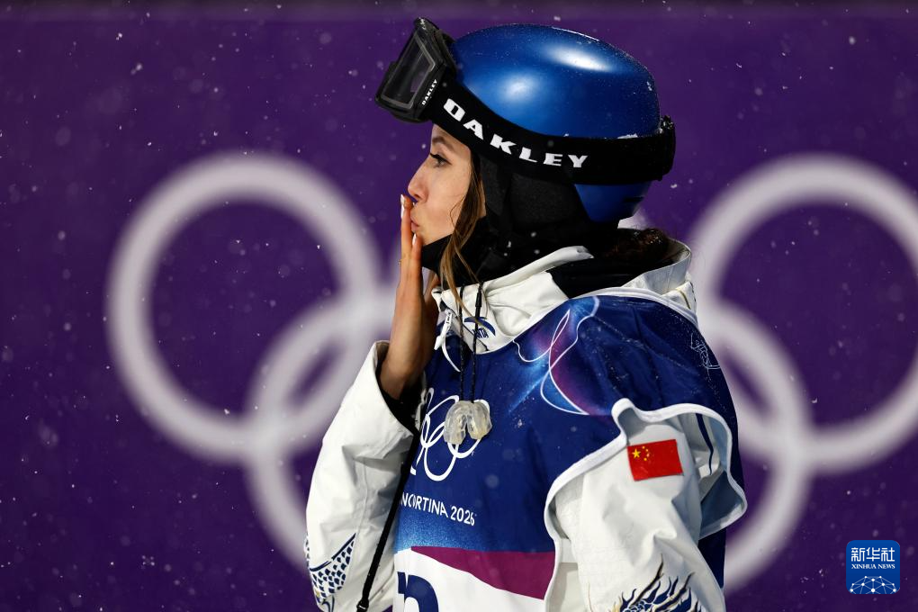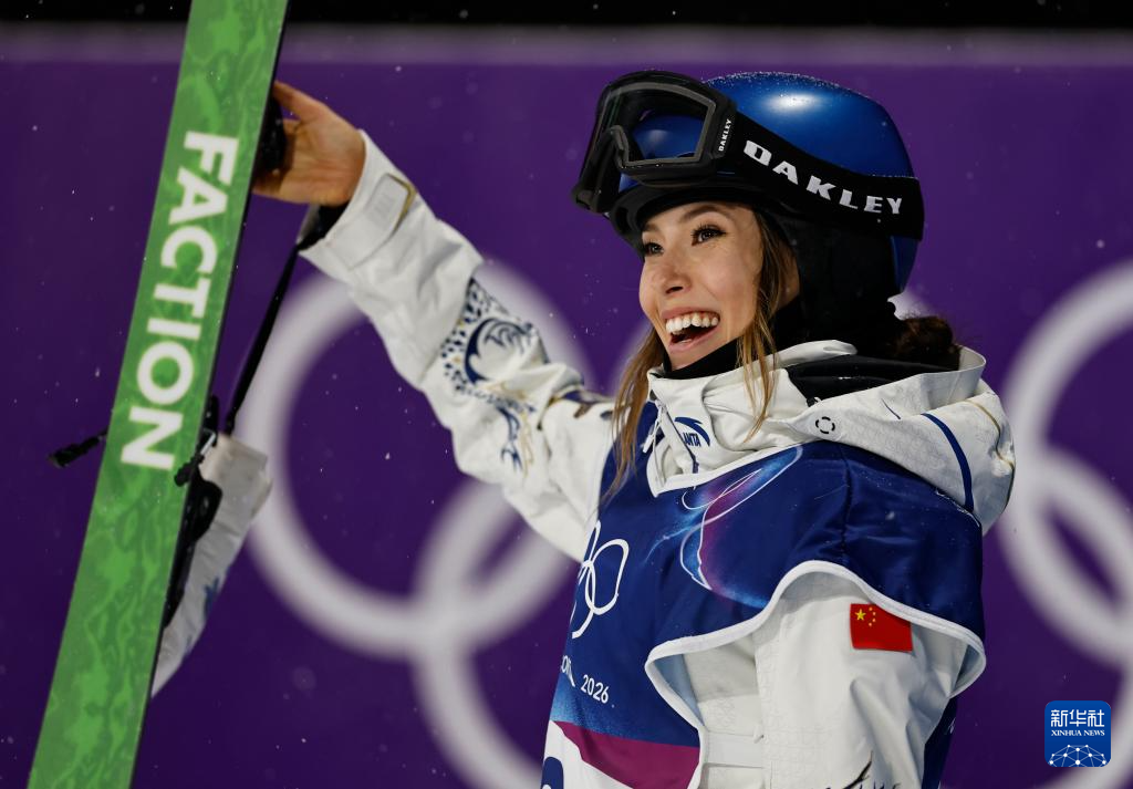 2月16日,中国选手谷爱凌在第三跳后。她获得亚军。
