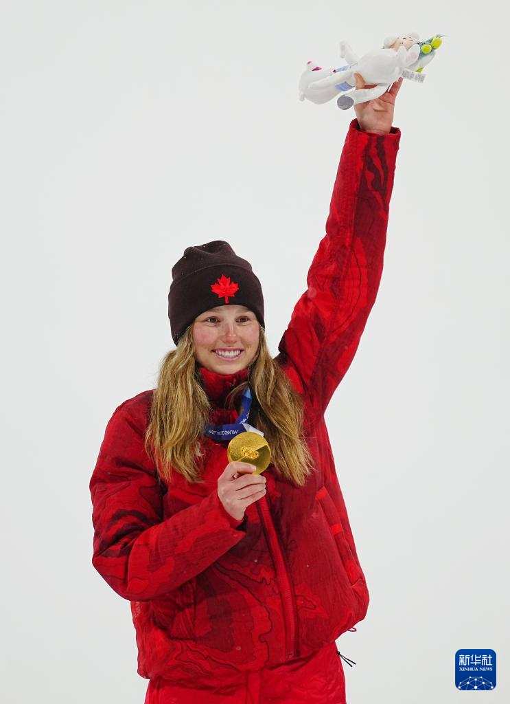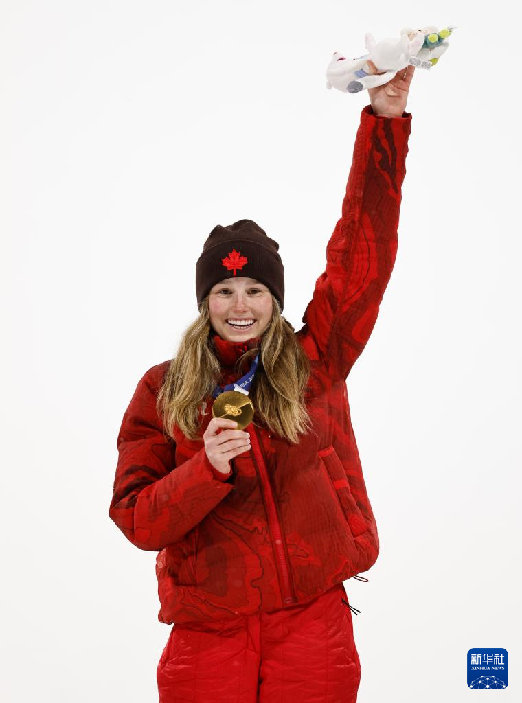 2月16日,冠军加拿大选手梅根·奥尔德姆在颁奖仪式上庆祝。