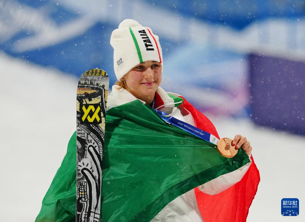 2月16日,季军意大利选手弗洛拉·塔巴内利在颁奖仪式上。