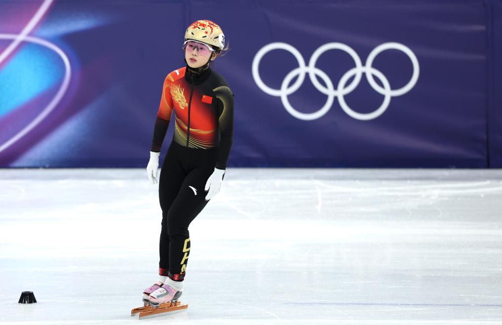 2月16日,中国选手杨婧茹在女子1000米四分之一决赛后。新华社记者 李明 摄