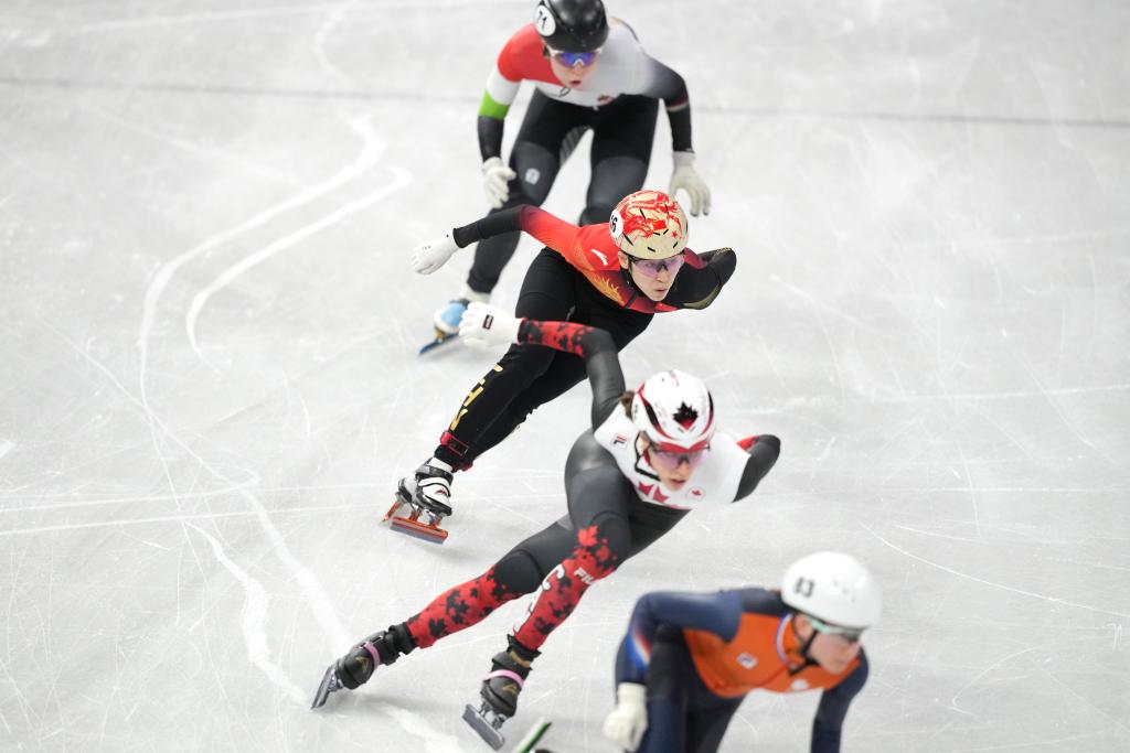 2月10日,中国选手范可新(中)在女子500米预赛中。新华社记者 薛宇舸 摄