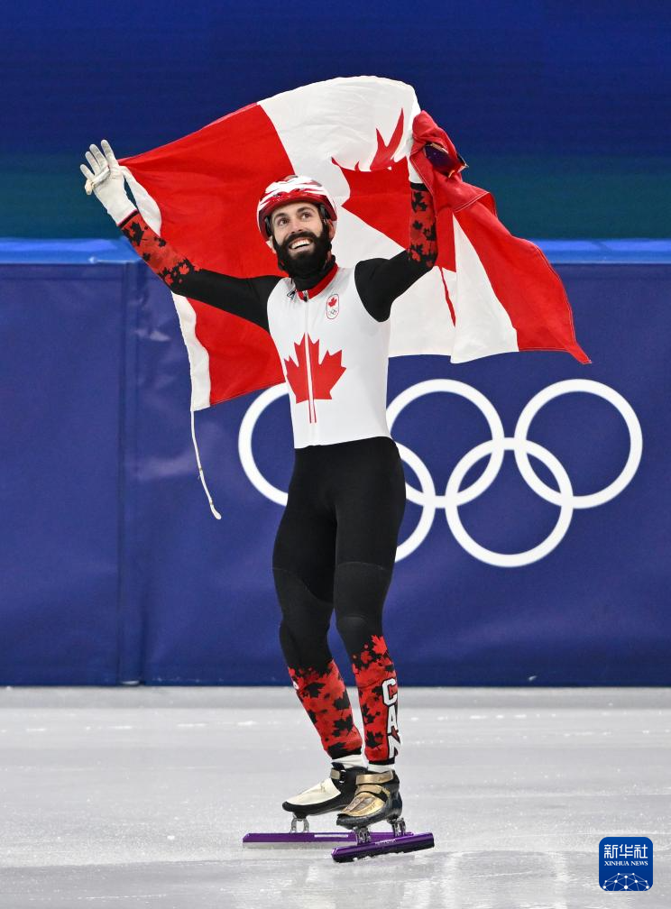 2月18日,加拿大队选手史蒂文·杜博伊斯庆祝夺冠。