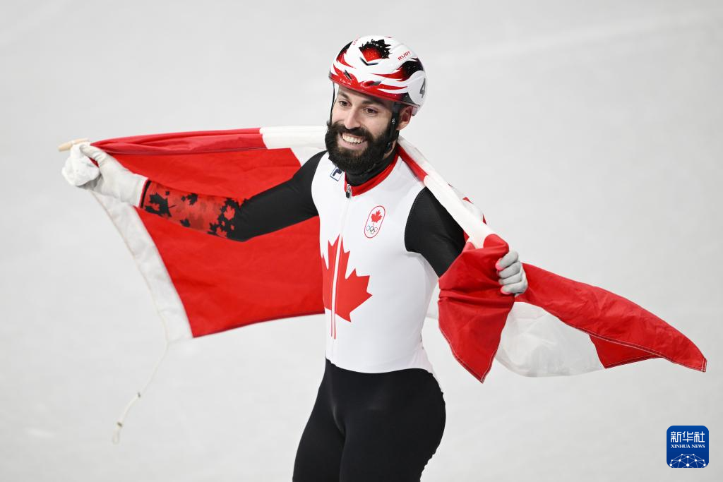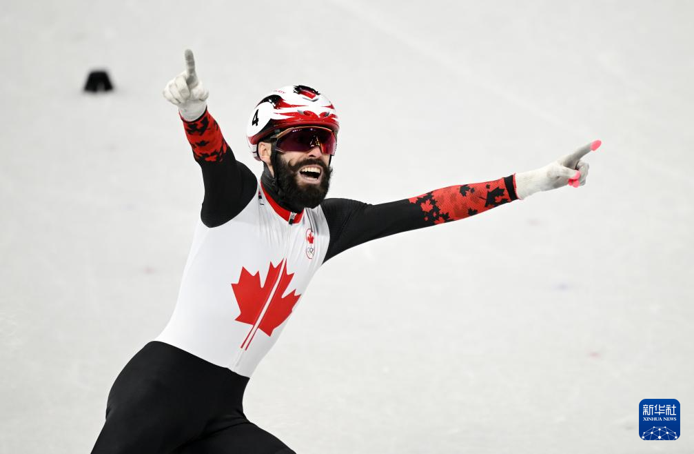 2月18日,加拿大队选手史蒂文·杜博伊斯在比赛中率先冲线后庆祝。