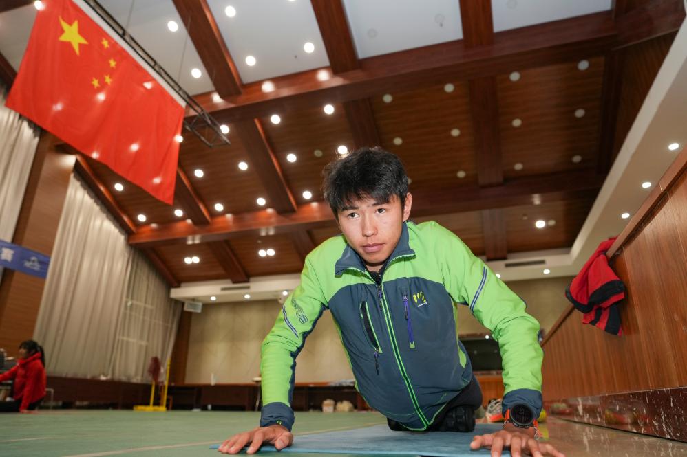 2026年2月19日,次旦玉珍在米兰-科尔蒂纳冬奥会滑雪登山女子个人短距离比赛前热身。新华社记者 颜麟蕴 摄