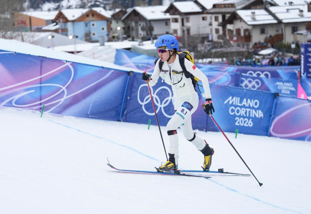 2026年2月21日,次旦玉珍在米兰-科尔蒂纳冬奥会滑雪登山混合接力比赛中。新华社记者 胡虎虎 摄