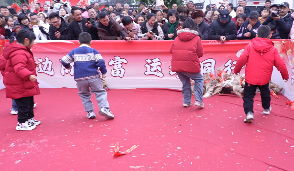 最热闹的当数“摸鸭子”比赛
