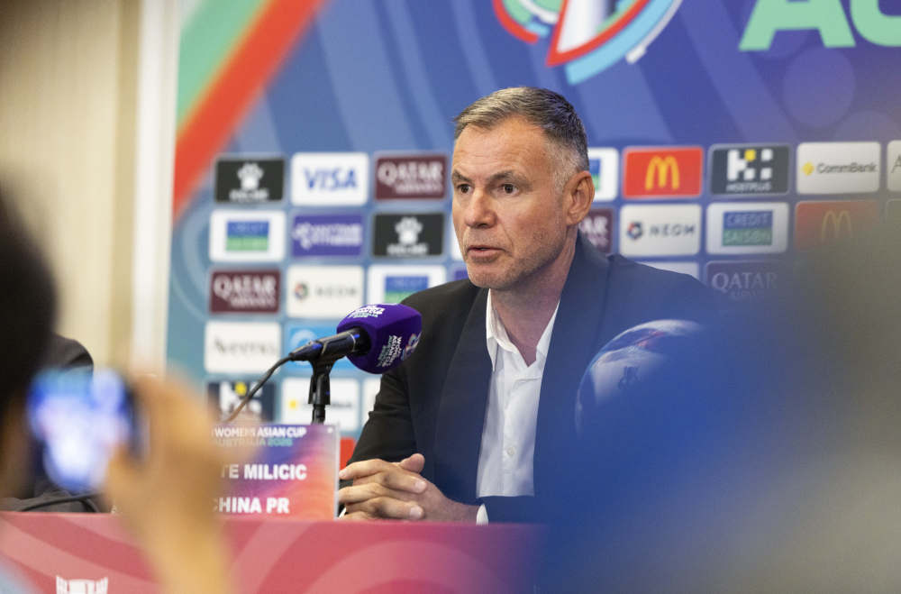 3月2日,中国女足主教练安特·米利西奇在新闻发布会上。新华社发(胡泾辰 摄)