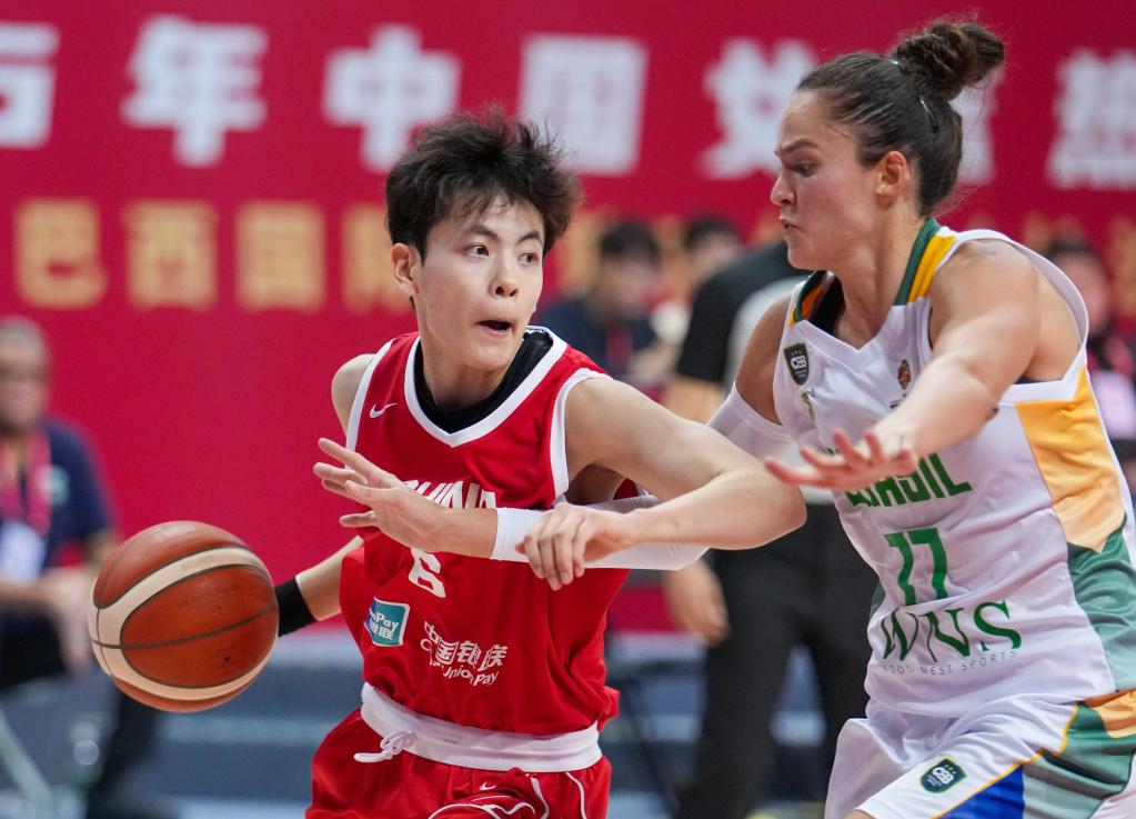 比赛开始后,巴西队先声夺人,一度以12:4领先。随着两名年轻内线球员刘禹彤、张子宇先后登场,中国队逐渐缩小分差,并在首节末以24:23反超。中国队在第二节占据场上优势,张子宇独得7分,对手单节仅得9分。中国队以44:32领先进入下半场。