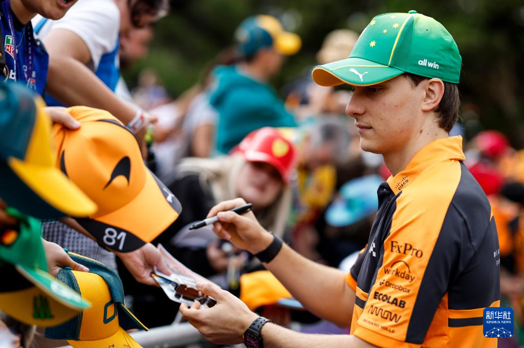 3月7日,迈凯伦车队澳大利亚车手皮亚斯特里在排位赛前与车迷互动。