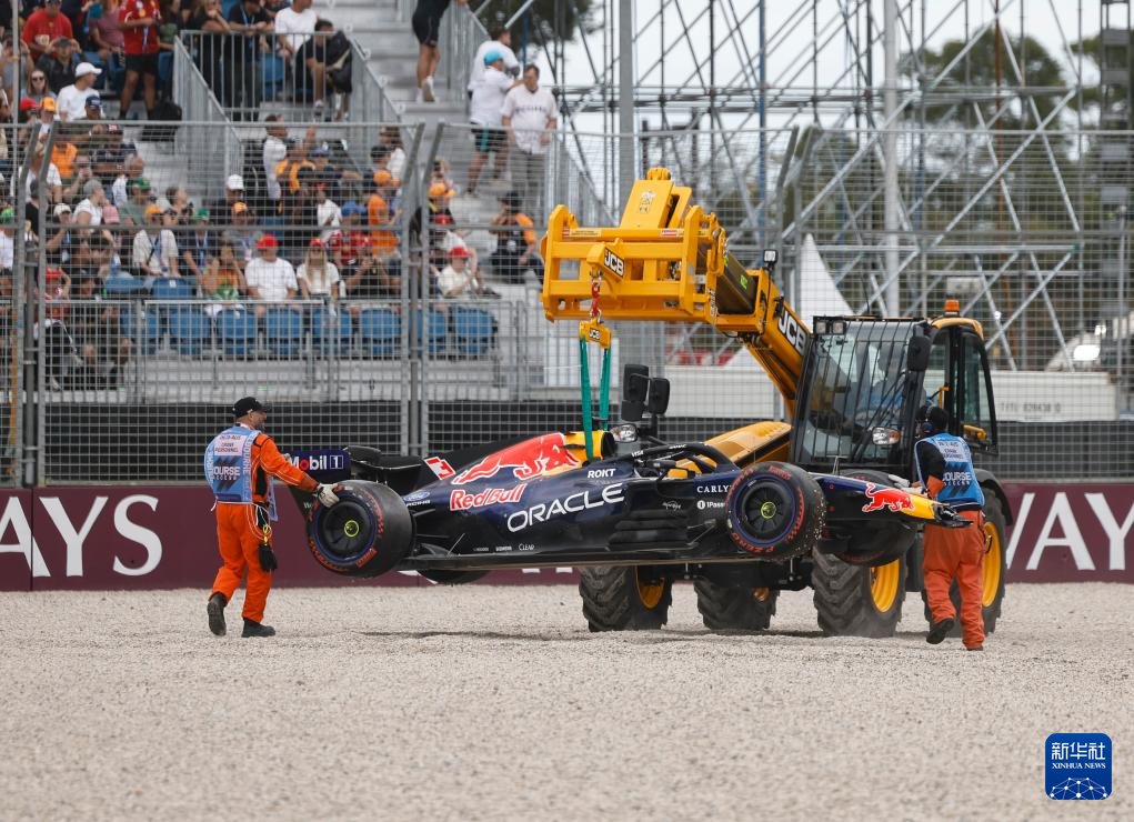 3月7日,红牛车队荷兰车手维斯塔潘的车被吊车挪走。